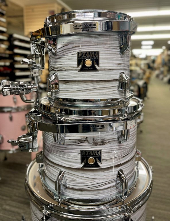 Catalina Maple's 605 shell pack features a 16" x 20" bass drum, 7" x 10" & 8" x 12" rack toms, 14" x 14" floor tom and 5.5" x 14" snare drum. These sizes are the ideal choice from drummers who need the best of both worlds in one drum kit.