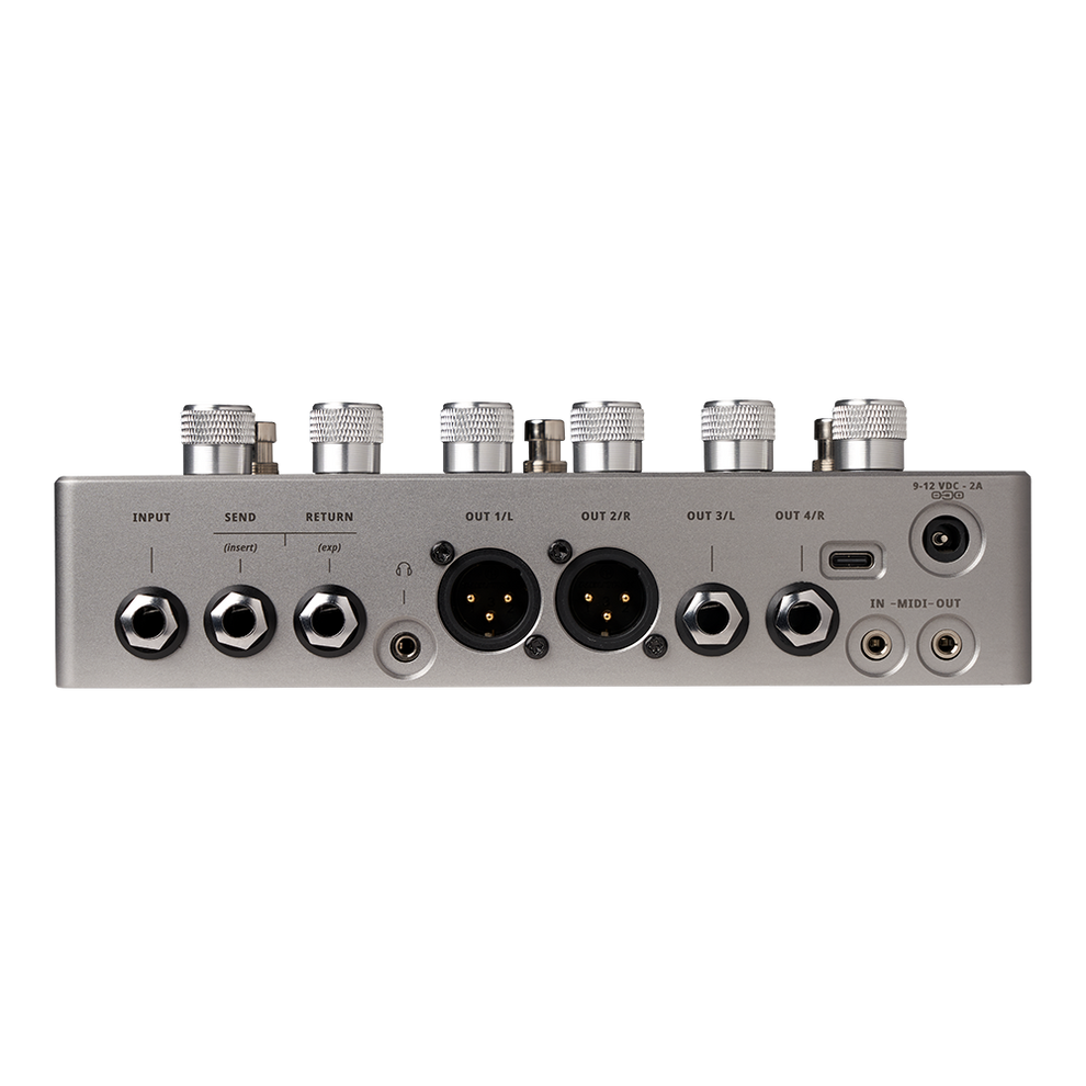 - Main Outputs: 2 1/4" outputs and 2 XLR outputs with the latter featuring an integrated, software-controlled ground lift. These outputs allow for stereo effects, split wet/dry signals, or multiple amplifier connections, delivering an immersive sonic experience.