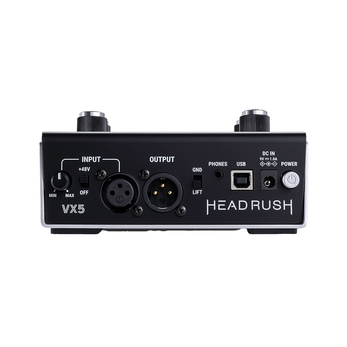 - While the technology and processing power housed within this vocal effects unit is as sophisticated as it gets, the HeadRush VX5 was designed with ease of use at the forefront. A clean and clearly labeled set of controls and color display makes dialing in the perfect vocal tone a breeze. Two footswitches allow for quick and easy preset navigation, which can be crucial in a live setting — as well as a temporary bypass for talking between songs and A/B settings inside each preset to seamlessly change up your sound mid-song. You can also automate preset changes using a playback rig with MIDI via USB.