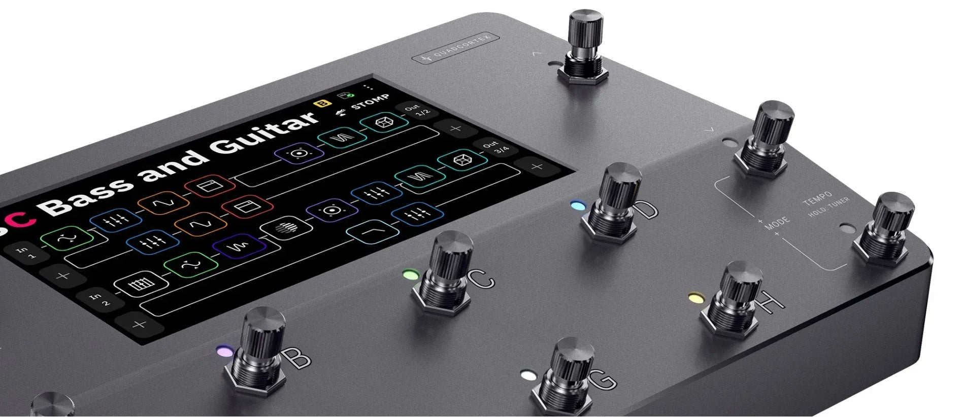 - Scene Mode: Select any footswitch to instantly activate and control the settings of any number of blocks within a rig.