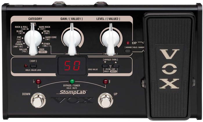 The StompLab IIG and IIB provide an expression pedal that lets you control a variety of effect parameters including wah and volume