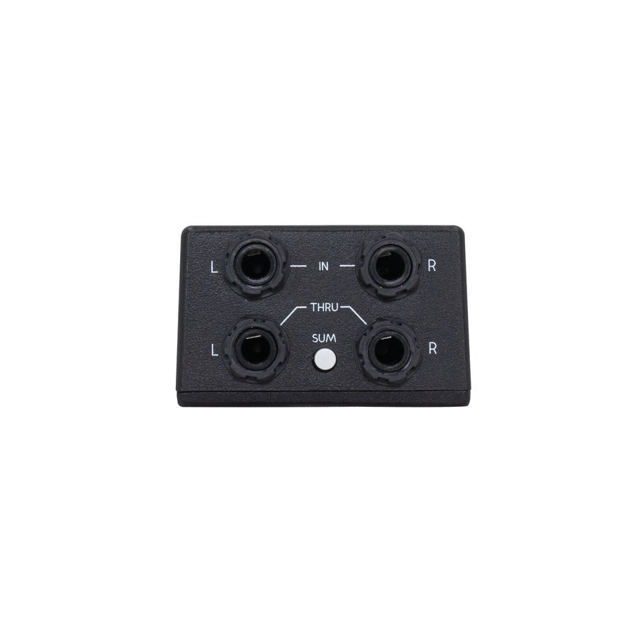 - Sum Switch: When Disengaged (Out), the Left Input Connects to the Left Thru. The Right Input Connects to the Right Thru Allowing the Use of Stereo Amplifiers. | When Engaged (In), Sum Connects the Left and Right Thru Jacks Together to Combine the Signals for Running Into a Single Amplifier (Use Either Thru Jack).