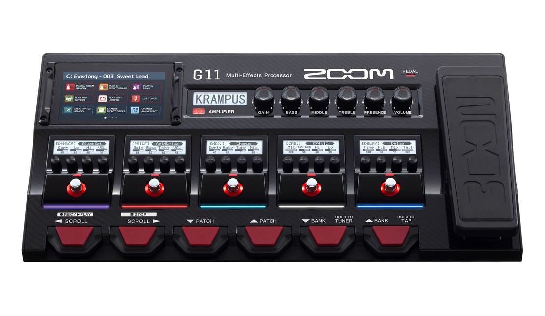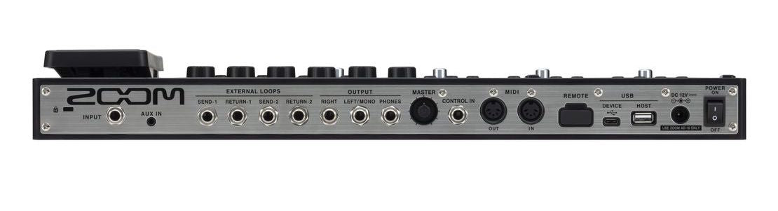 Integrated pedal board with dedicated amp modeling panel, five stomp switches and expression/volume Control Touchscreen interface on color LCD with drag and swipe functions for easy and fast navigation Chain up to nine effects plus an amplifier emulation Original amp modeling combinations Original distortion and modulation effects 70 built in IR emulations plus 130 available slots for user uploaded IR's Two send/return effects loop plus MIDI in/out 5-minute stereo looper 68 built-in rhythm patterns USB audio interface for direct recording to your DAW Remote iOS connection for using Handy Guitar Lab via Bluetooth adapter (BTA-1) Compatible with Zoom Guitar Lab to download additional effects