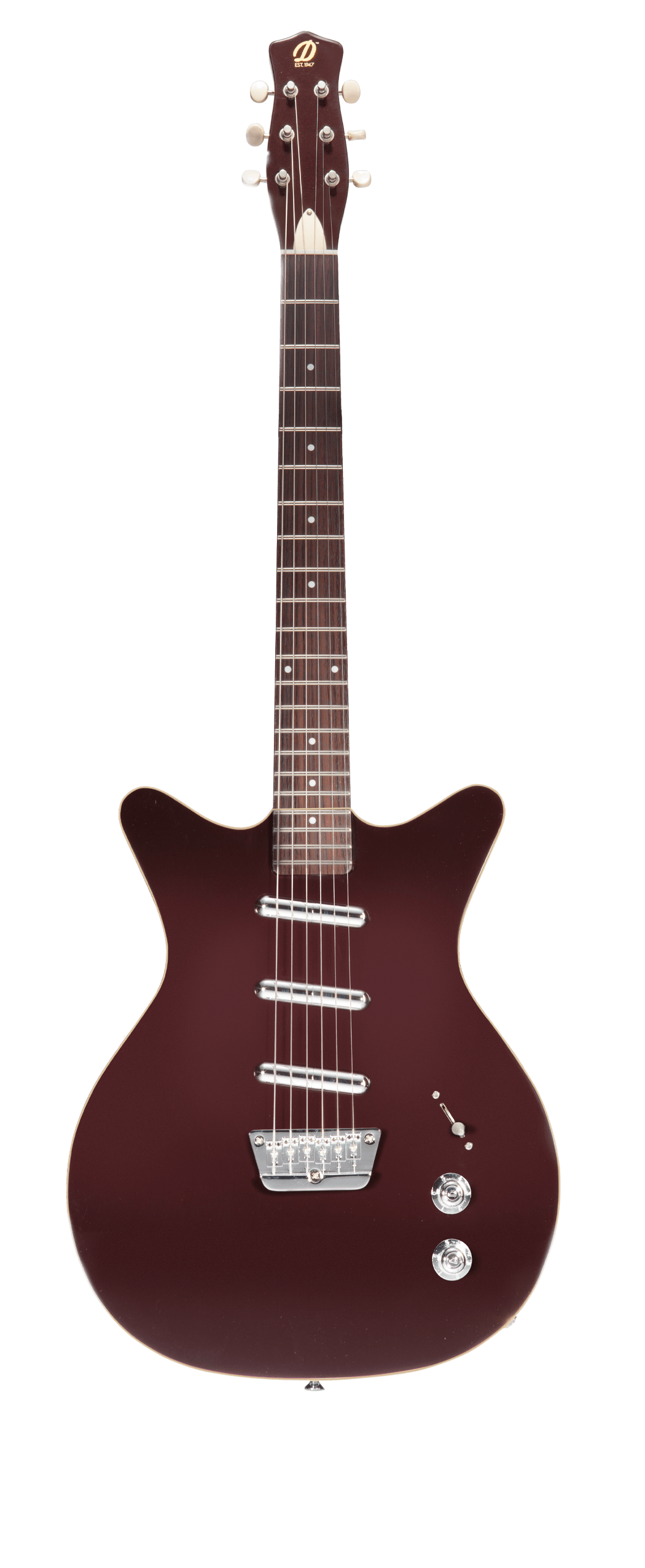 This slice of heaven features 3 of our Vintage 50’s Lipstick® Pickups. Bridge pickup has 20% hotter output for great leads. Triple Divine also has CRL® 5 Way Switch, front and back binding, bone nut and Gotoh® vintage 15:1 tuners. Our best Danelectro® ever!