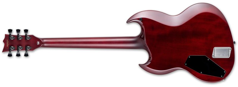 Formerly known as “ESP Standard”, ESP E-II instruments are made in Japan at the ESP factory. No matter who you are and what kind of music you make, the E-II Viper in See Thru Black Cherry is a guitar you’ve always wanted. It has the diabolically asymmetrical double-horned body you love, but with modern enhancements that make it ideal for all high-performance music styles. Built at 24.75” scale with set-thru construction for smooth access to the highest frets, the E-II Viper See Thru Black Cherry has a mahogany body and neck with a satin-finished back for extreme speed and fluidity. Its ebony fingerboard features pearloid ESP flag inlays and 22 extra-jumbo stainless steel frets, and is fully bound in white along with the headstock. This guitar features design details like a rich translucent finish, a multi-ply black brushed fingerboard, and complementary black hardware. Pro components on the E-II Viper See Thru Black Cherry include Gotoh locking tuners, a Gotoh TOM bridge and tailpiece, and a bone nut. Its active pickups are a set of highly versatile Fishman Open Core Classic Humbuckers with black rings and push-pull controls on the tone and volume knobs that select between a modern high-output tone, a vintage tone, and a single coil voice. Includes ESP deluxe hardshell case.