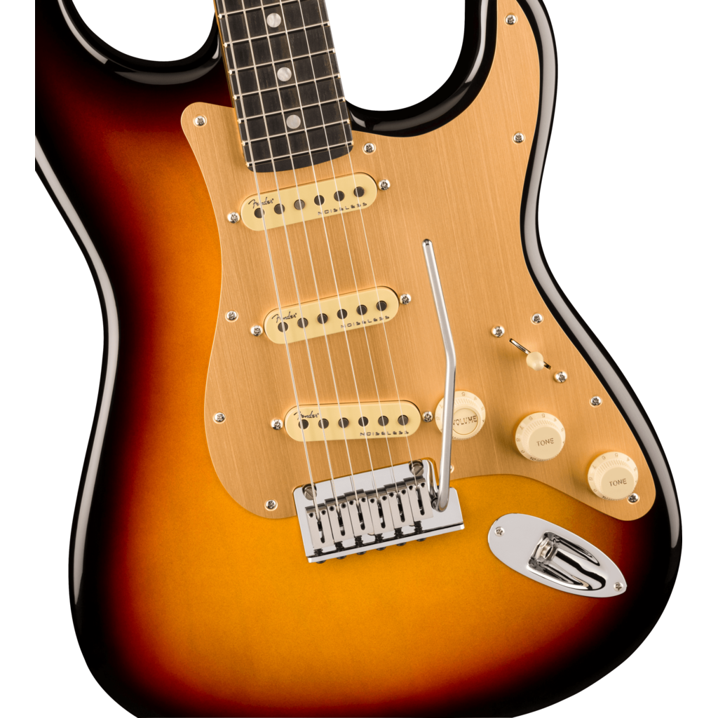 Under the hood, a trio of Ultra II Noiseless™ Vintage Strat® pickups deliver everything from sweet crystalline cleans to searing leads, all without a hint of hum. Our patented S-1™ switch cleverly unlocks additional pickup configurations for even more tonal variety. Additional road-ready features include 2-Point American Ultra synchronized tremolo with pop-in arm, polished stainless steel block saddles, cold rolled steel block, deluxe locking tuners, soft-touch knobs and 1-ply anodized aluminum pickguard.