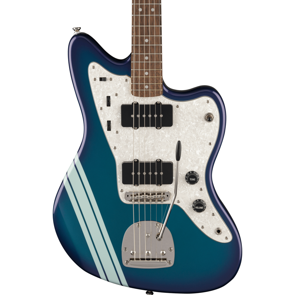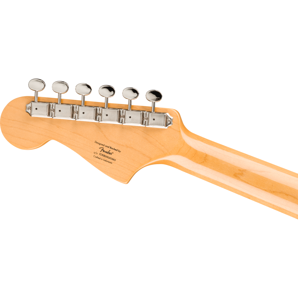 The Classic Vibe '60s Jazzmaster® is a faithful and striking homage to the iconic Fender favorite, producing undeniable Jazzmaster tone courtesy of its dual Fender-Designed alnico single-coil pickups. Player-friendly features include a slim, comfortable "C"-shaped neck profile with an easy-playing 9.5"-radius fingerboard and narrow-tall frets, a vintage-style tremolo system for expressive string bending effects, and a floating bridge with barrel saddles for solid string stability. This throwback Squier model also features 1960s-inspired headstock markings, rich-looking nickel-plated hardware and a slick vintage-tint gloss neck finish for an old-school vibe.