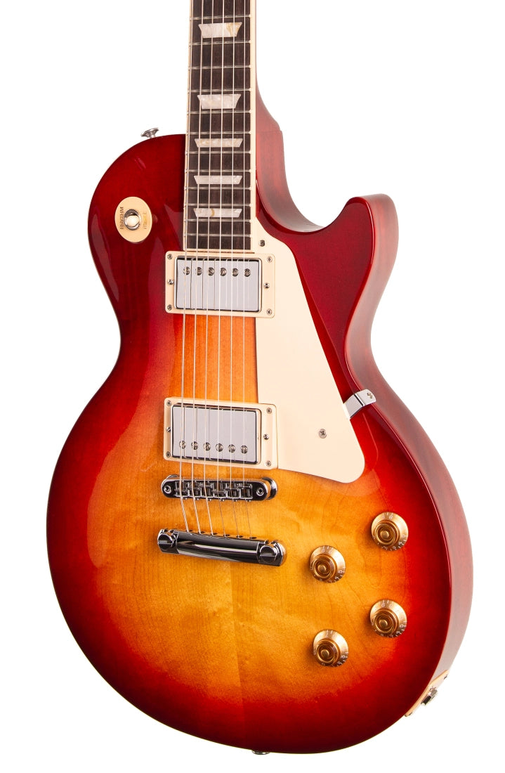 It features an Ultra Modern weight-relieved mahogany body with a plain maple cap, a mahogany neck with a traditional heel, SlimTaper™ profile, and a bound rosewood fretboard with acrylic trapezoid inlays, Vintage Deluxe tuners with Keystone buttons, and a pair of Gibson's acclaimed Burstbucker™ Pro pickups wired to push/pull volume controls for coil tapping and individual tone controls for even more sonic options. Available in a variety of gloss nitrocellulose lacquer finishes with matching trim, this is the essential Les Paul, refined and updated for today's players. A soft shell case is also included.