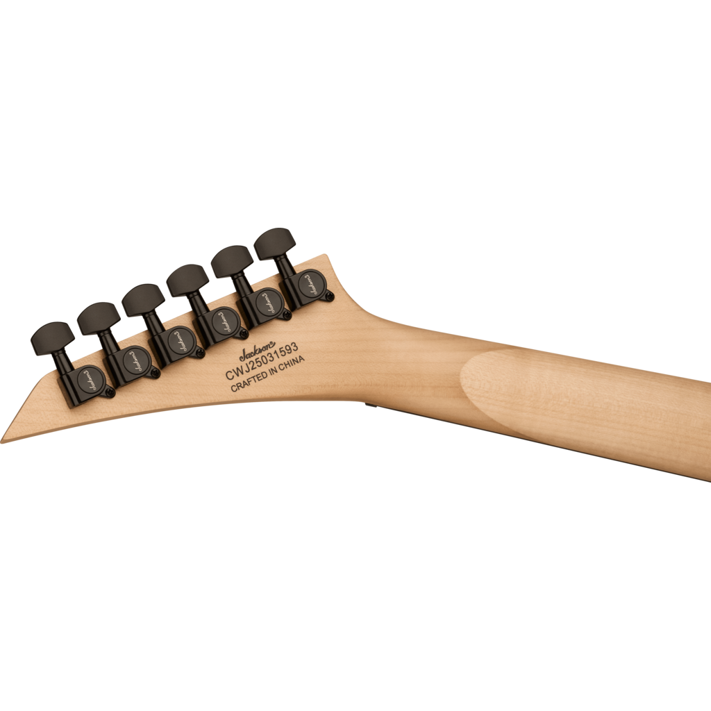 A pair of Jackson high-output humbucking pickups with ceramic magnets crank out clear tone with plenty of girth. The neck position delivers bright highs while the bridge adds plenty of crunchy distortion. Its versatile voice can be shaped with a three-way toggle switch and single volume and tone controls, while a string-through-body hardtail bridge with block saddles improves intonation and sustain.