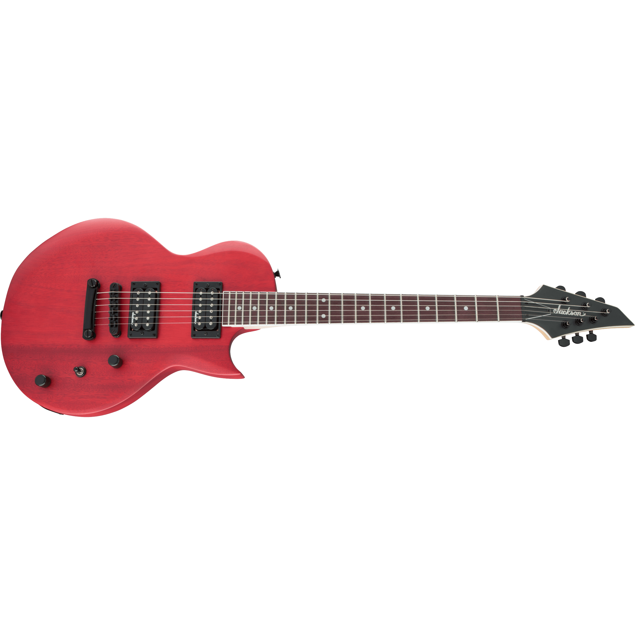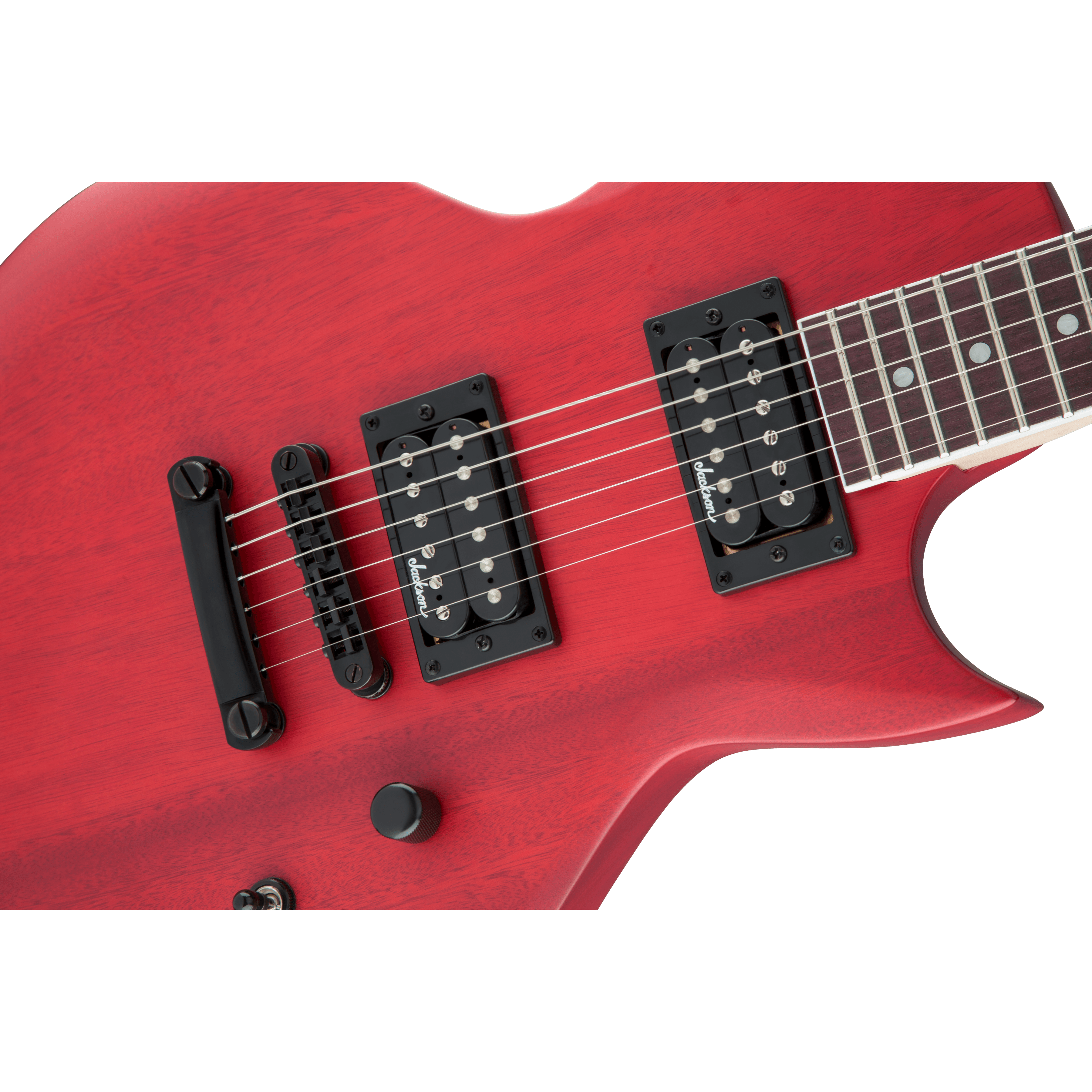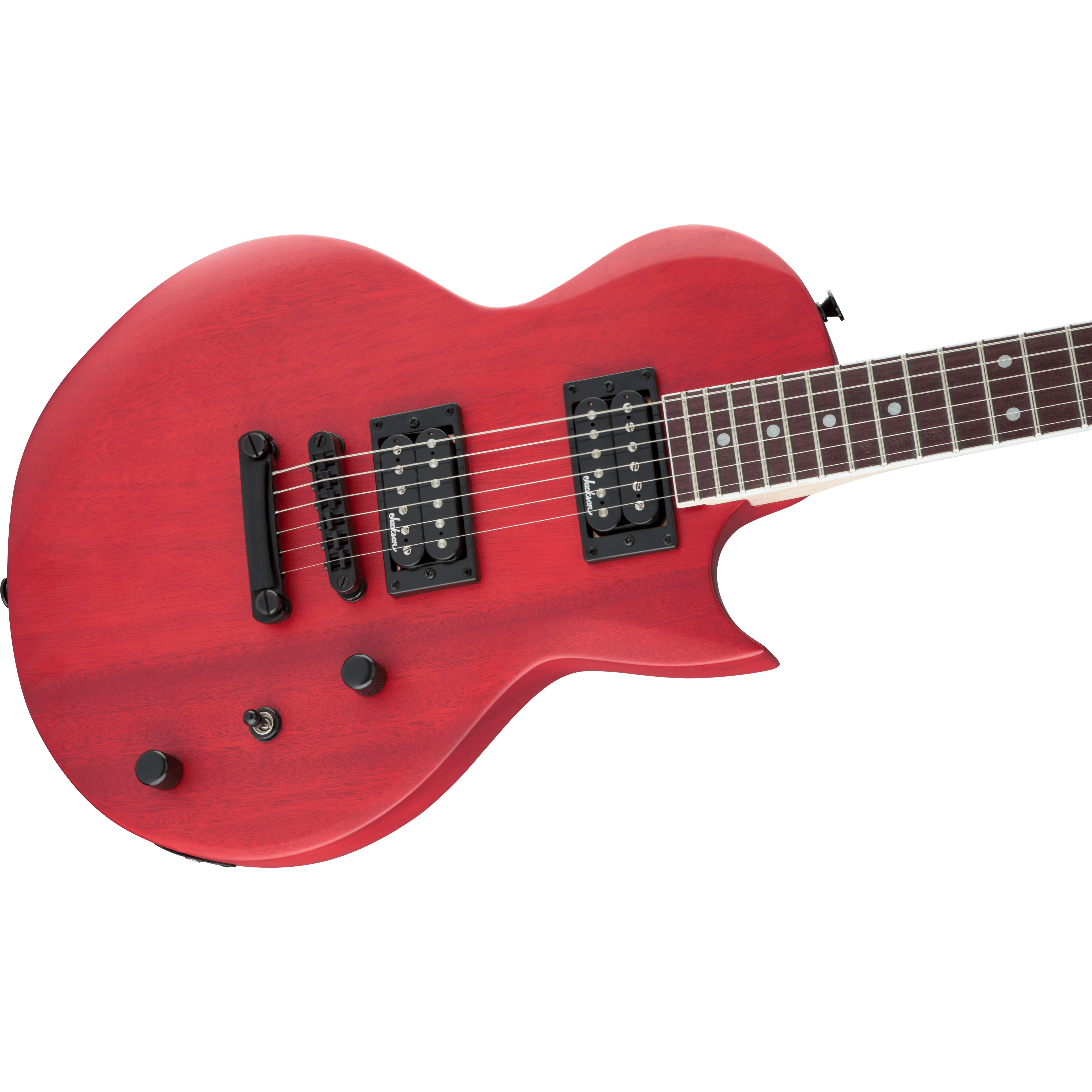 Two Jackson high-output humbucking pickups in the bridge and neck positions crank out clear tone with plenty of the girth required for current styles. The pickups' crisp, clear tone is channeled by a three-way toggle switch along with single volume and tone controls for versatile sound that matches any playing situation, and can cut through a thick mix to highlight your playing.