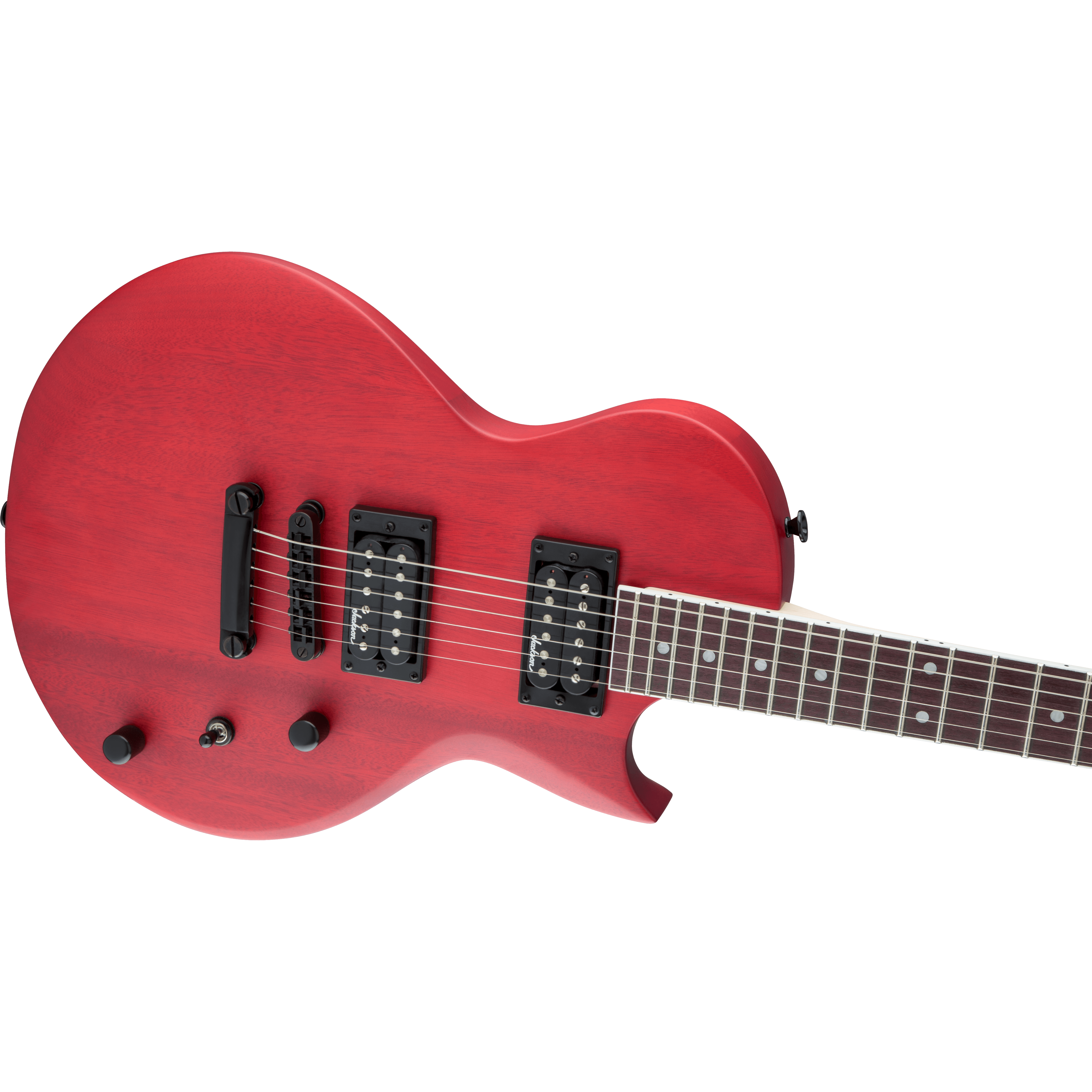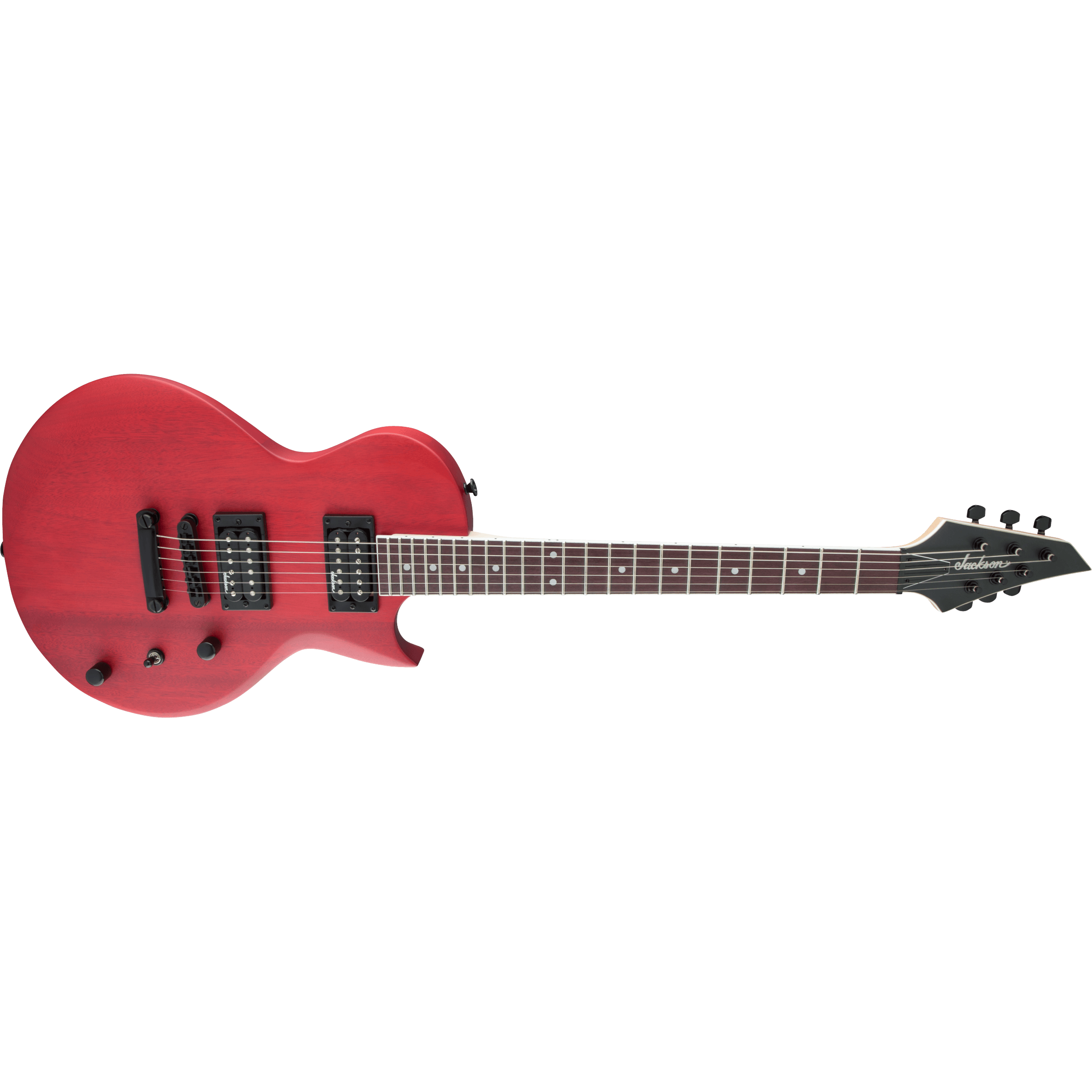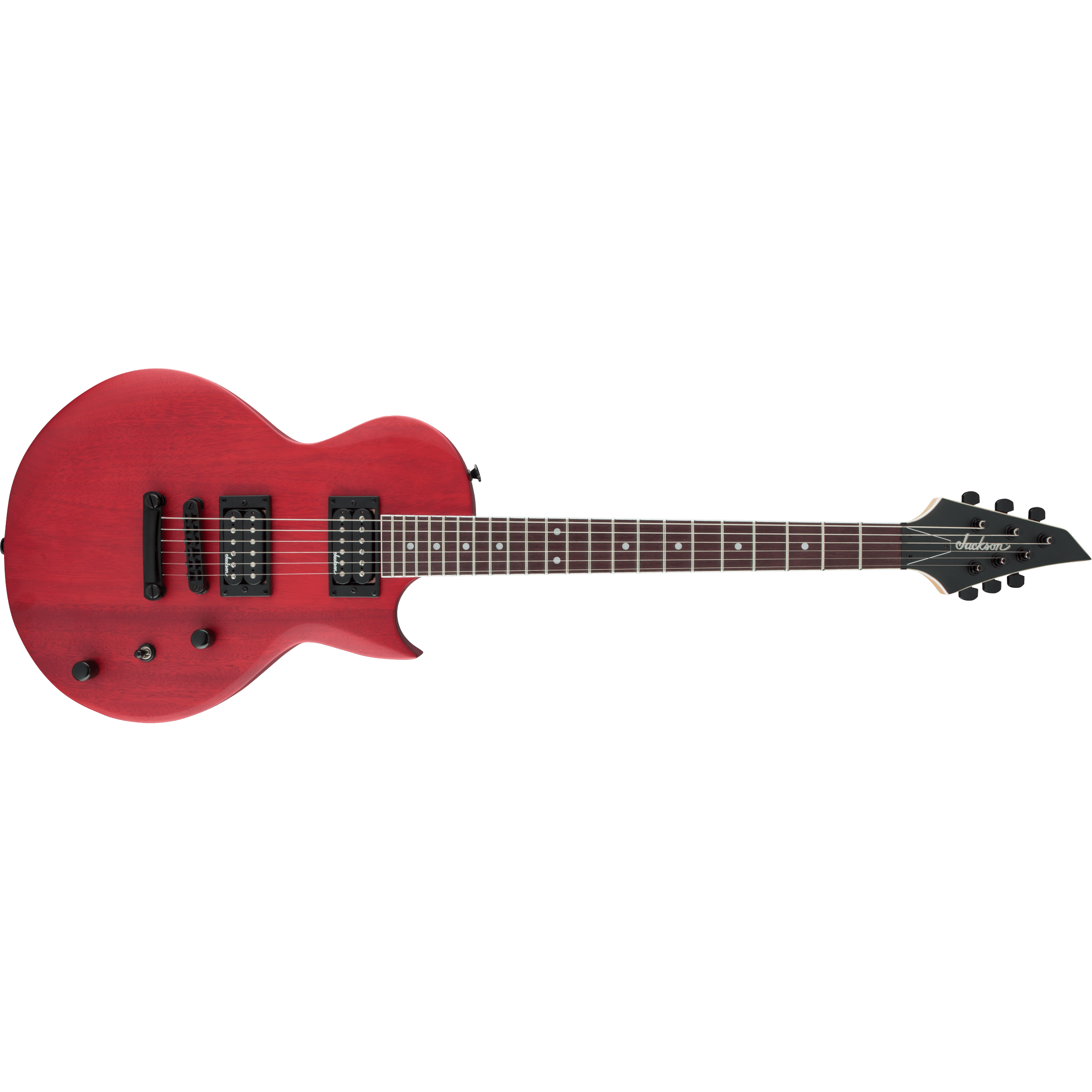 Two Jackson high-output humbucking pickups in the bridge and neck positions crank out clear tone with plenty of the girth required for current styles. The pickups' crisp, clear tone is channeled by a three-way toggle switch along with single volume and tone controls for versatile sound that matches any playing situation, and can cut through a thick mix to highlight your playing.