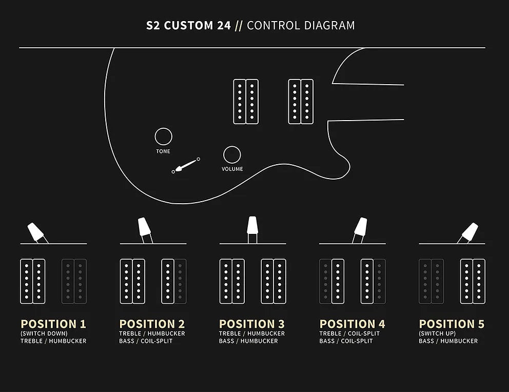 - Retaining the classic maple-top / mahogany-back combination with our classic body shape and an asymmetrical beveled top, this guitar has a resonant, powerful voice. Its versatility comes from its Maryland, USA-wound PRS 85/15 pickups and 5-way blade switch, offering all the same sounds as the flagship Custom 24. The PRS S2 Custom 24 now comes with PRS Phase III tuners, featuring a handsome open-back design, unplated brass shafts, and highly-usable gear ratio. Familiar for PRS players of old, and a fresh take for players of all types.