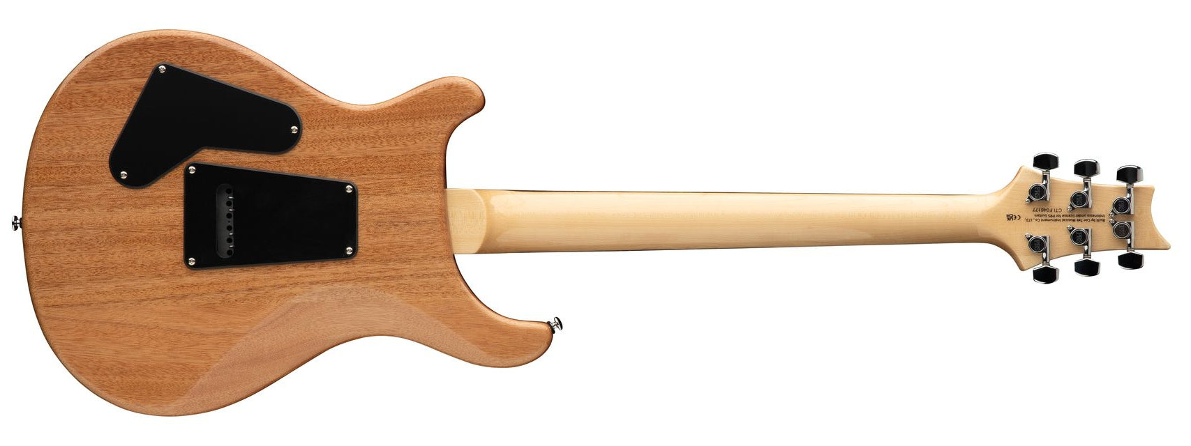 - Classic design elements include a maple top, mahogany back, rosewood fretboard, 24 frets, 25" scale length, bird inlays, signature headstock logo, and PRS patented tremolo.