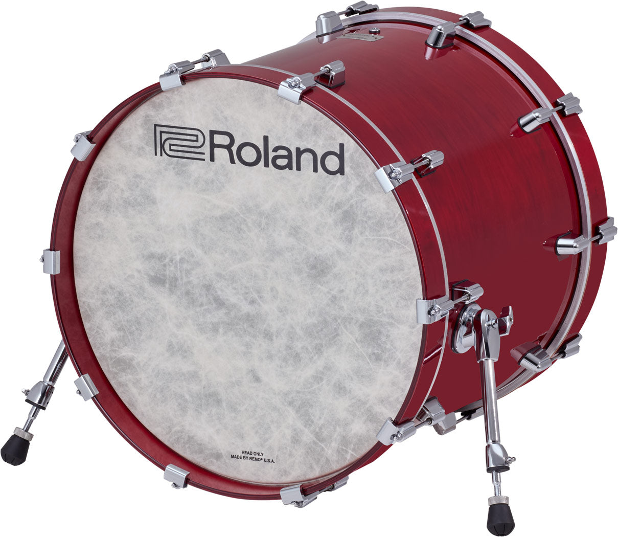 The KD-22 is a premium 22-inch kick drum pad that comes standard with the flagship VAD716 V-Drums Acoustic Design kit. It features a full-depth wood shell and an innovative pad sensor system built into an acoustic drumhead for authentic feel and rebound. The KD-22 also offers an updated leg design, improved pad durability, and a larger trigger area for double pedals and short beater settings.