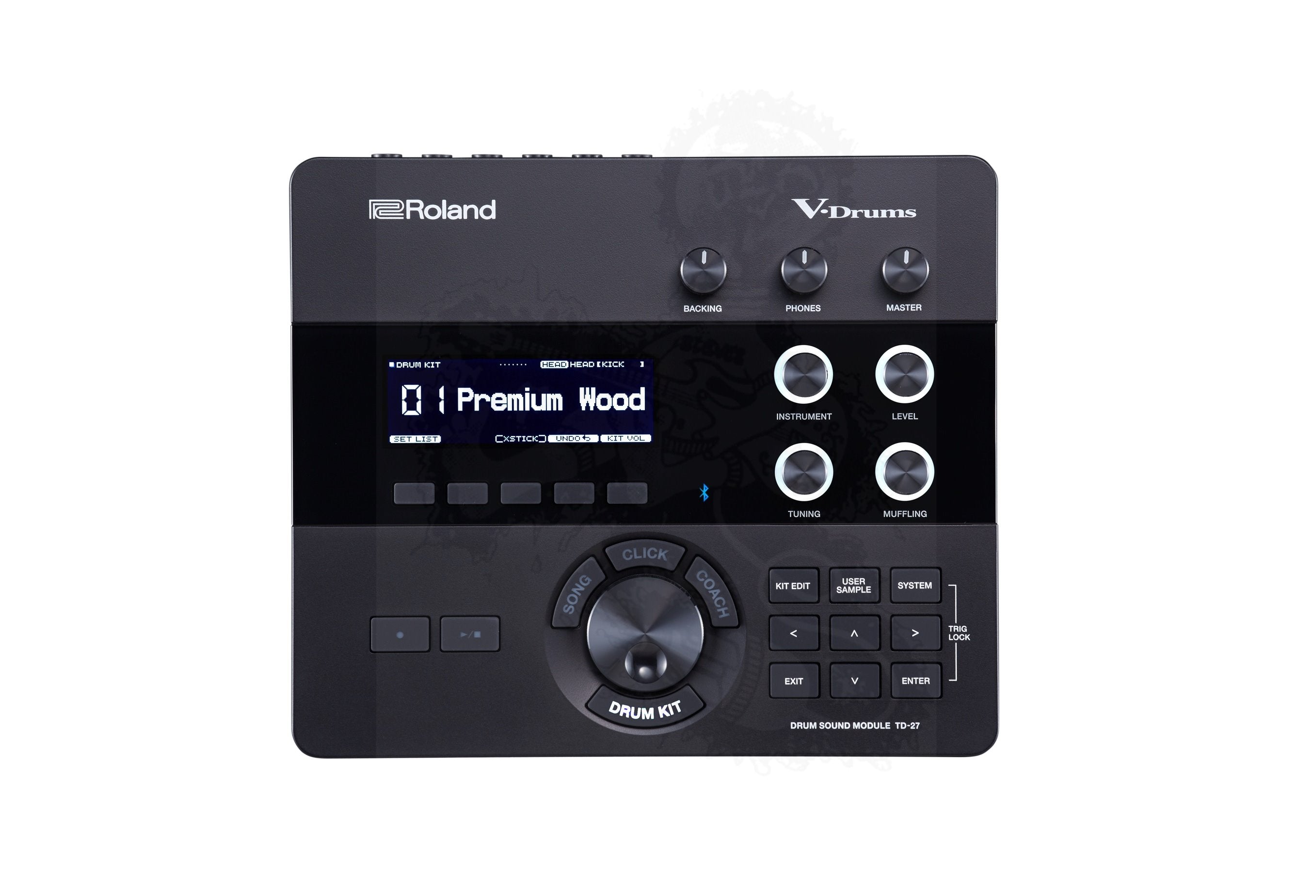 The TD-27 V-Drums module is loaded with the finest acoustic drum sounds you’ve ever heard. Roland’s Prismatic Sound Modeling produces drums that not only sound exceptional, but also respond just like real acoustic instruments when you play them. Advanced digital trigger inputs support Roland digital pads for unmatched expression, while new PureAcoustic Ambience Technology offers a variety of inspiring drumming spaces at the touch of a button. A wide selection of electronic sounds from Roland’s rich sonic history are also included, providing must-have sounds for modern styles. And by loading and layering your own samples with internal drums, you’re able to craft sounds that no other drummer can claim. -Advanced sound module with Prismatic Sound Modeling derived from the flagship TD-50 -Three digital trigger inputs for advanced Roland trigger pads like the 14” PD-140DS digital snare and 18” CY-18DR digital ride cymbal -Hands-on interface for quick-and-easy selecting and personalizing drum sounds -Drum in inspiring sound spaces with newly developed PureAcoustic Ambience Technology -Overhead mic simulator and studio-level effects for processing drum sounds -Import your own WAV samples via an SD card -Stereo mix output and two assignable outputs for sending individual drum sounds to a PA mixer -Integrated 28-channel USB audio interface for professional computer music production -Multi-pin trigger jack and included cable for connecting with a standard V-Drums pad setup -Dedicated Crash 2 trigger input and three auxiliary trigger inputs for easy kit expansion -Onboard Bluetooth for drumming with music from a smartphone or laptop -Built-in practice functions for developing drumming skills Incredible Prismatic Sound Modeling Derived from the flagship TD-50 module, the TD-27 is filled with drums that live and breathe like real acoustic instruments. We start by sampling the finest drums, percussion, and cymbals—both vintage and modern—in world-class recording studios. Roland’s unique Prismatic Sound Modeling is then applied to the samples, bringing them alive with proprietary behavior modeling refined over two decades. Every time you play a drum or cymbal in the module, you're not simply triggering a canned sound—you're playing a full-bodied instrument that responds like its acoustic counterpart in every way, putting unlimited sonic range at your command. Digital Trigger Technology Roland’s cutting-edge digital pad technology brings even deeper realism to the V-Drums experience. The TD-27 module features three digital trigger inputs, which work with advanced Roland digital pads like the PD-140DS snare and CY-18DR ride to deliver the most natural expression of your drumming. Multiple sensors and lightning-fast processing work together for truly amazing response, enabling you to play genuine techniques in the most natural way, with every nuance precisely detected and perfectly translated. And if you’re not ready for digital pads just yet, the TD-27 also has analog trigger inputs for standard snare and ride pads. Create (and Craft) Your Signature Drum Kit With an acoustic kit, you make the sound your own by swapping head types, adjusting the tuning, applying damping, tweaking the snare wire tension, changing out the kick beater, and more. This is all possible with the TD-27 module, with hands-on controls and deep editing options that allow you to craft customized kits for any situation. You can also load your own WAV samples via SD media, using them on their own or layering them with internal sounds. PureAcoustic Ambience Technology New PureAcoustic Ambience Technology optimizes each kit, creating an incredibly natural and immersive sound field when playing. But you can go deeper too, and adjust the mic position on each drum kit, and dial in the overall sound with the newly developed overhead mic simulator. Finally, advanced onboard multi-effects and mixing capabilities give you the power of a full-scale studio console, with transient, parametric EQs, compressors, reverbs, delays, and more at your command. Connectivity for Stage and Studio The TD-27 is a powerful command center for any electronic drumming setup, with ample connectivity options for both stage and studio use. There are stereo outputs for the overall drum sound, plus two direct outputs for sending kick, snare, and other sounds to an audio console for independent mixing. The built-in USB audio interface makes computer music production simple, with up to 28 discrete audio channels available over a single cable. MIDI is also supported via USB and dedicated I/O, allowing you to sync with other MIDI devices and trigger sounds in computer software. Versatile Trigger Support In addition to its three digital trigger inputs, the TD-27 module features a multi-pin analog trigger jack for fast and easy connection with any standard V-Drums pad arrangement via an included cable. There’s also a dedicated analog trigger input for a second crash cymbal pad, plus three auxiliary trigger inputs for customizing your setup by adding Roland kick, tom and cymbal pads, or trigger pads like the BT-1. Bluetooth Connectivity and Built-In Coaching Tools With the practice features in the TD-27 module, you’ll always look forward to the next playing session. Built-in Bluetooth lets you wirelessly stream audio from a phone or laptop to the module, perfect for immersive jams with headphones. Play along with favorite music tracks or mix the sound from a YouTube lesson video with the kit. Onboard coach functions build skills and track your progress, while the advanced metronome helps improve your inner clock. And at any time, you can record your playing and listen back to hear what you need to work on.