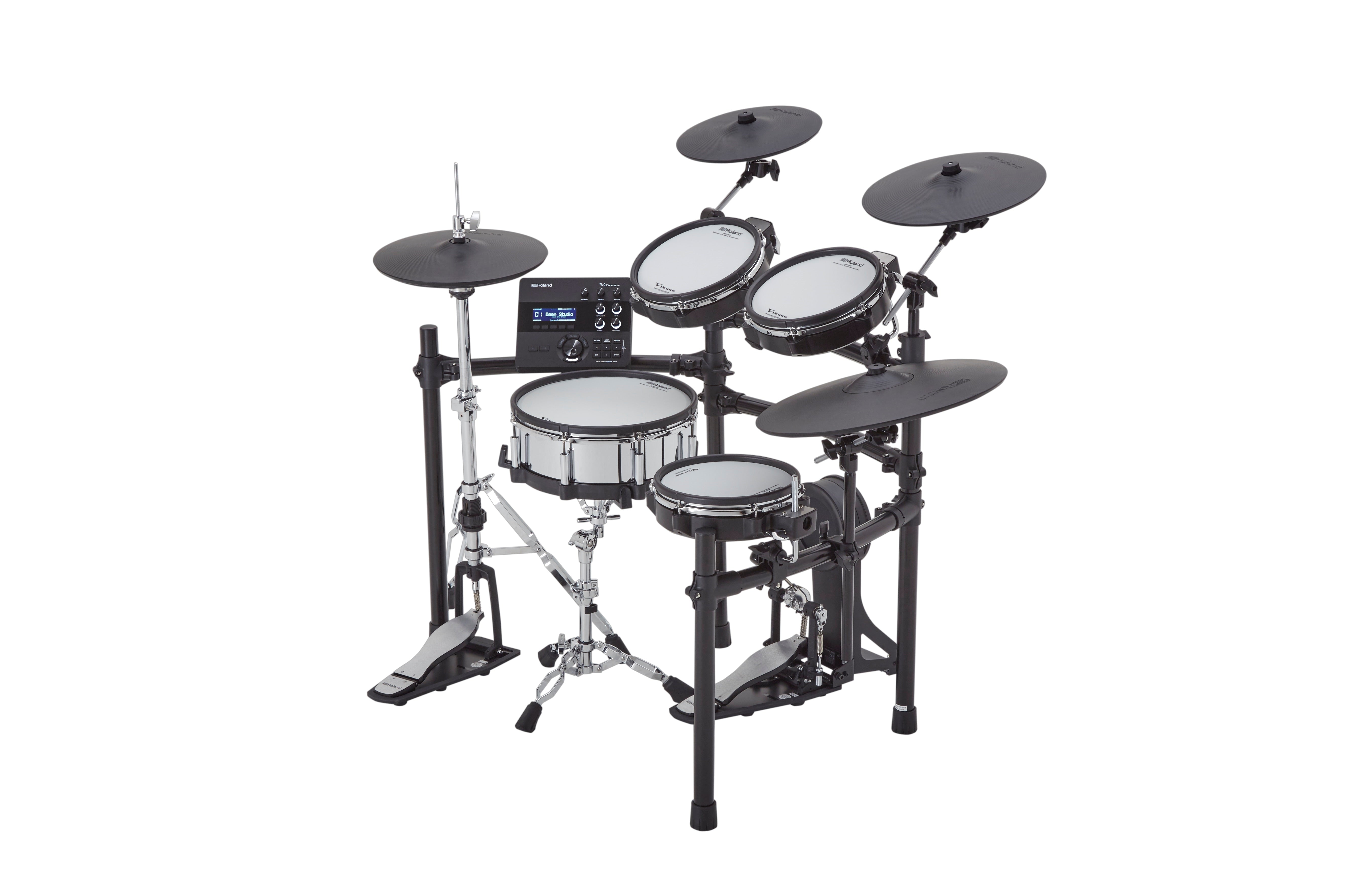 • 14-inch digital snare, 14-inch digital hi-hat, and 18-inch ride cymbal with high-resolution, multi-sensor triggering for unparalleled dynamics and accurate positional detection