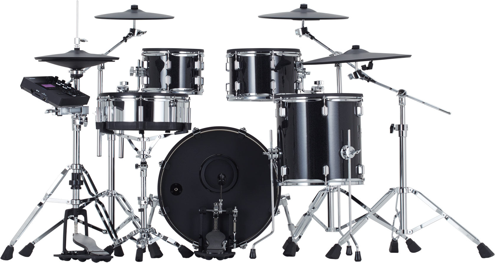 - Five-piece V-Drums Acoustic Design kit with full-size wood shells and upgraded double-braced chrome stands