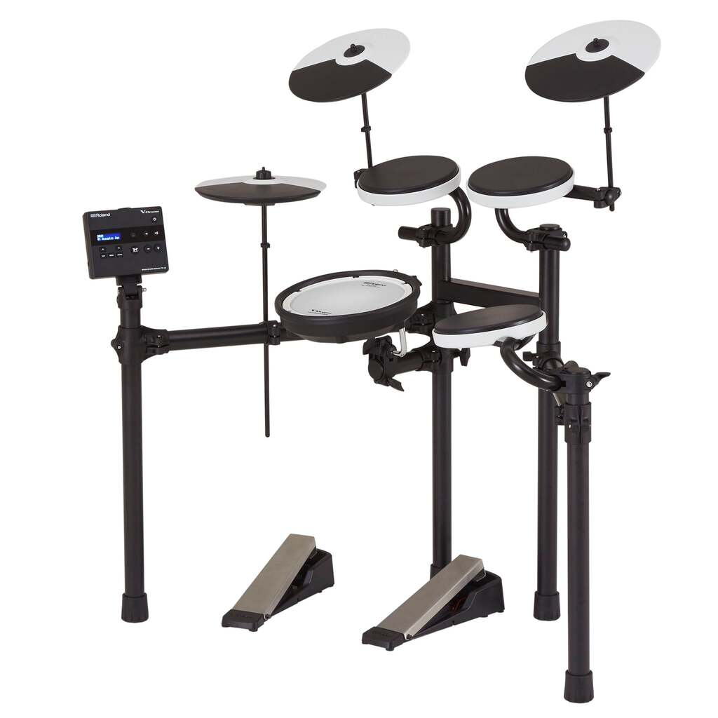 Start Your Drumming Journey the Right Way The TD-02 series brings you the world’s finest entry-level electronic drumming experience—at an affordable price. Backed by decades of V-Drums innovation, these compact and highly expressive kits are far greater than the sum of their parts. Every element works together to form a complete musical foundation, from the world-class sounds and ultra-responsive pads to the onboard practice tools, robust hardware, and practical features for reducing noise when playing at home. And with expansion options such as Bluetooth® connectivity for mobile devices, upgradable pads, and more, you can easily grow your setup with genuine Roland accessories as needs evolve. The TD-02KV is the top-line model in the series, featuring a mesh-head snare pad with natural acoustic stick feel and a rugged four-post stand with a wide acoustic-style playing layout. The kit also includes three tom pads, a quiet beaterless kick pedal, and three cymbal pads (hi-hat, crash, and ride). A Rock-Solid Drumming Foundation When you’re just starting out, it’s essential to get a drumming setup that encourages you to build skills the right way. The expressive sounds, responsive pads, and comfortable layouts of TD-02 kits provide the foundation you need, helping you master authentic playing techniques that will translate to larger V-Drums sets and acoustic drums. PDX-8 Mesh-Head Snare The TD-02KV kit includes a PDX-8 snare pad with a tension-adjustable Roland mesh head like higher-end V-Drums pads. Offering the natural stick feel and rebound of an acoustic snare, it’s a prime upgrade for ambitious drummers. Dual triggers support head articulations and rimshots, and you can play cross-stick techniques as well. Highlights • High-quality electronic drum kit for new and returning drummers, with authentic V-Drums sound, expression, and playability • TD-02 module with 16 ready-to-play kits inspired by high-end V-Drums • Add wireless audio/MIDI streaming to the module with the optional BOSS Bluetooth® Audio MIDI Dual Adaptor • Onboard Coach functions for guided practice and steady development of drumming skills • Built-in metronome with dedicated panel control and numerous rhythm subdivision and sound options • Upgraded PDX-8 mesh-head snare pad with natural acoustic stick feel and cross-stick playability • Three tom pads and three cymbal pads (hi-hat, crash, and ride) with sensitive playing surfaces and expressive response for developing proper techniques • Kick trigger and hi-hat controller pedals with noise-reducing design features for minimizing sound transfer to other rooms • Rugged and stable four-post stand with a wide acoustic-style layout • Perfectly adjust the response of each pad to your playing touch with a deep array of sensitivity settings • Headphones output for quiet practice • Audio input for drumming with music from a smartphone or music player • USB audio/MIDI connectivity for working with music production apps on computers and mobile devices • Expand and upgrade your drumming experience with a wide range of V-Drums accessories