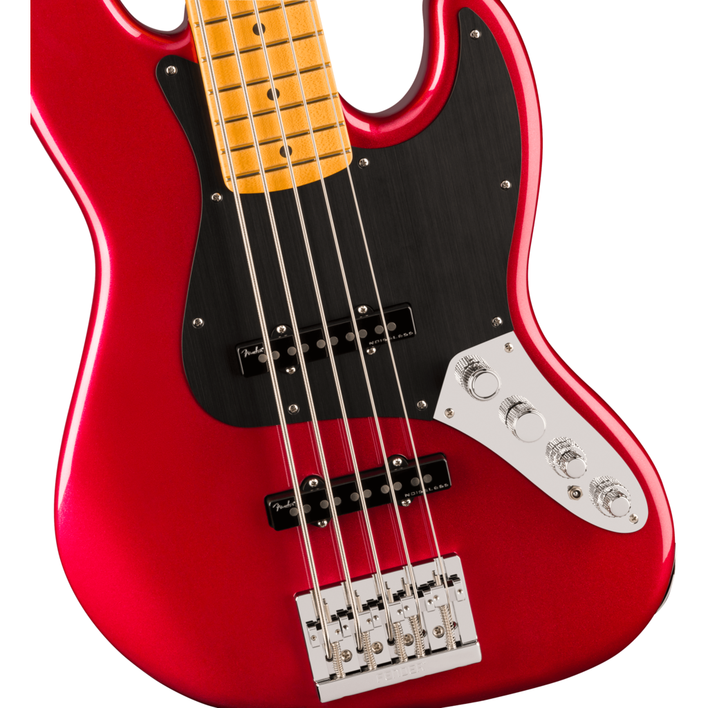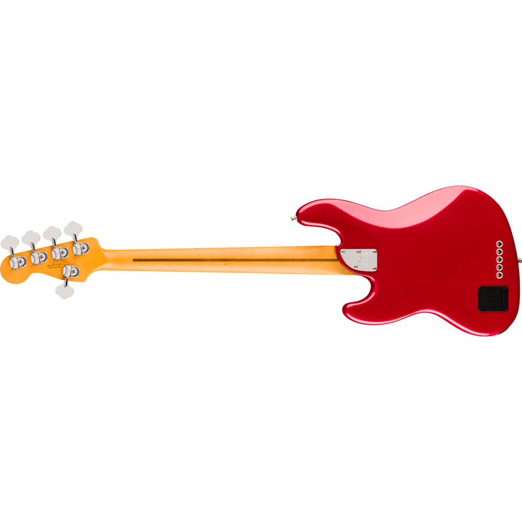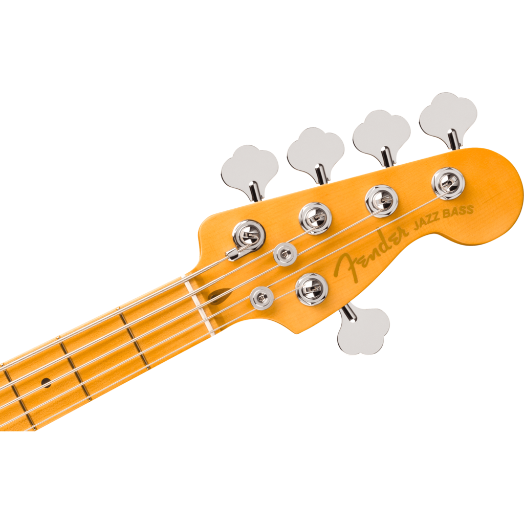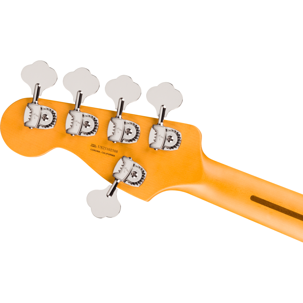The Fender® American Ultra II Jazz Bass® V features a select alder body with sculpted body contours. For effortless playability, the quartersawn maple neck features our Modern D profile and smooth Ultra Satin finish. Ebony or quartersawn maple 10”-14” compound radius fingerboards feature Ultra rolled edges, medium-jumbo frets, Luminlay® side dots and Graph Tech® TUSQ® nuts. The tapered neck heel and sculpted body contours allow unparalleled access to the higher register, while the truss rod access at the headstock provides convenient and easy setup and adjustment.