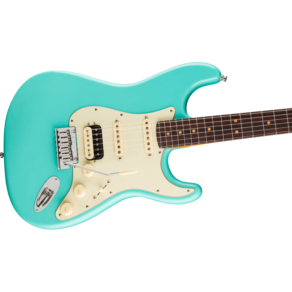 Under the hood, Pure Vintage '61 Strat® single-coils deliver classic Fender tones, from sparkling cleans to rich, expressive leads while the Haymaker™ humbucker brings powerful, articulate crunch. Performance hardware includes a precision-engineered 2-Point American Ultra synchronized tremolo with polished stainless steel block saddles, cold rolled steel block, and deluxe locking tuners for quick string changes and superior tuning stability.
