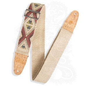 Levy’s 2″ hemp ‘vegan’ guitar strap with printed diamond design on natural hemp webbing with 2-ply cork ends.