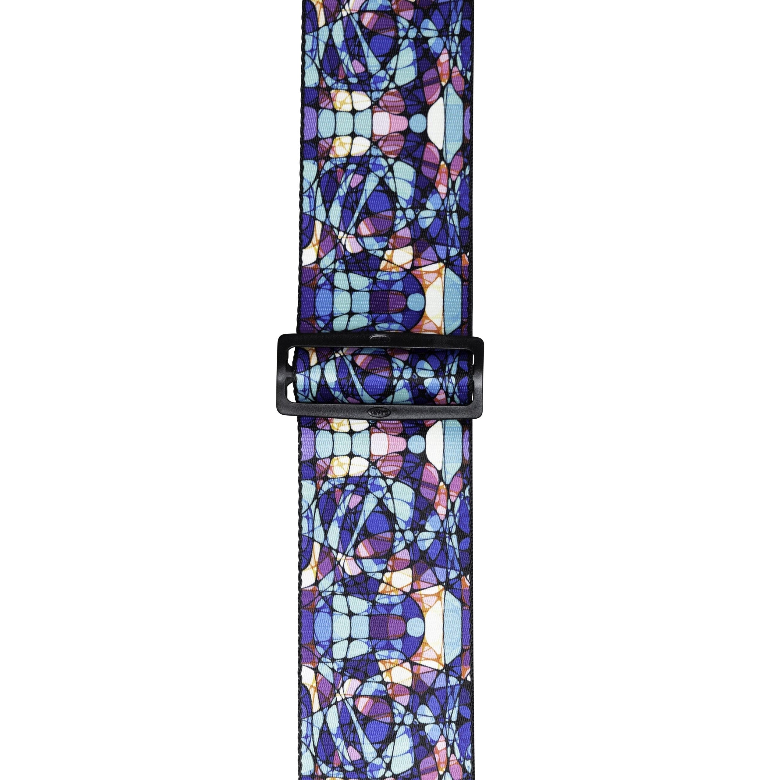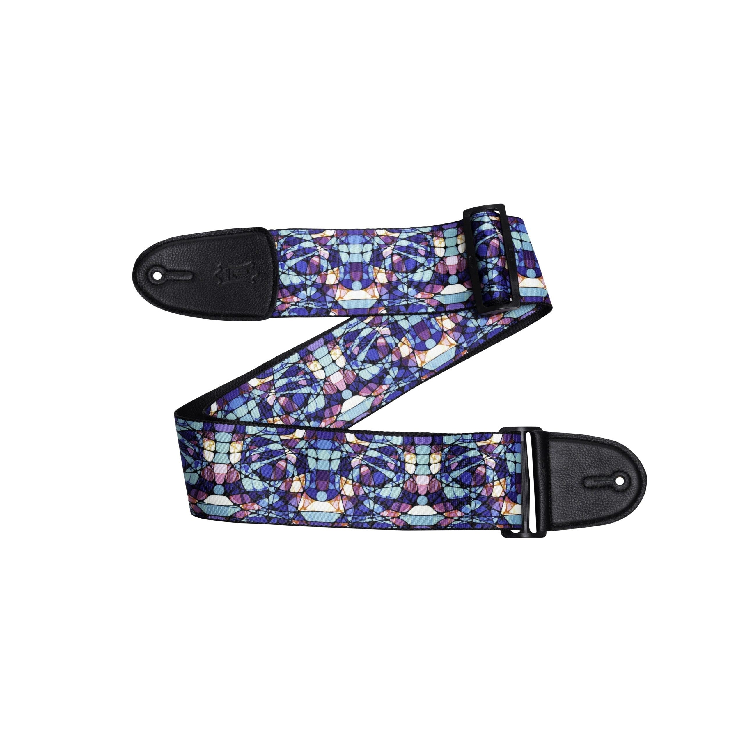- Levy’s 3″ Wide Polypropylene Guitar Strap With Stained Glass Design In Blue Mirage