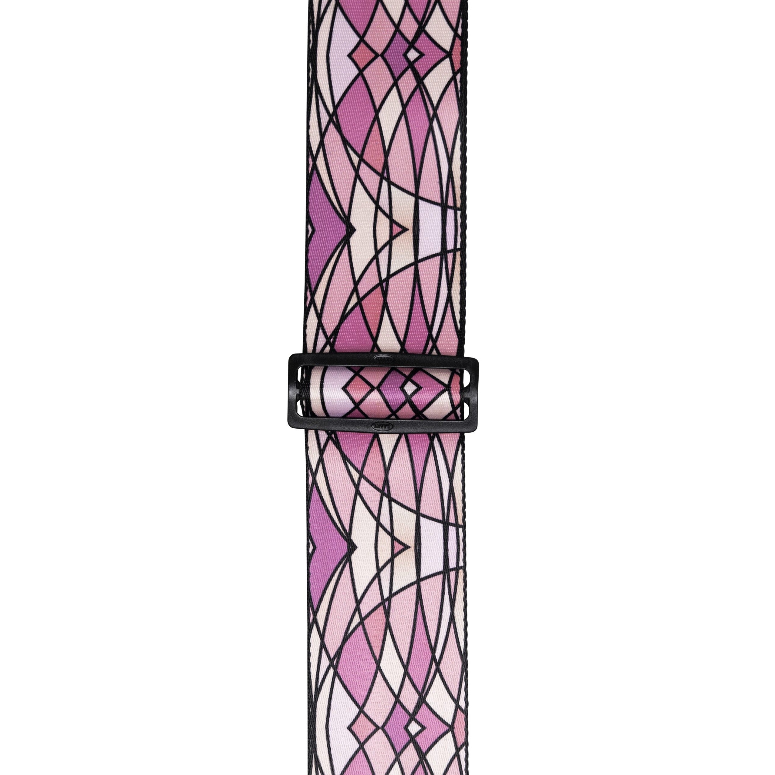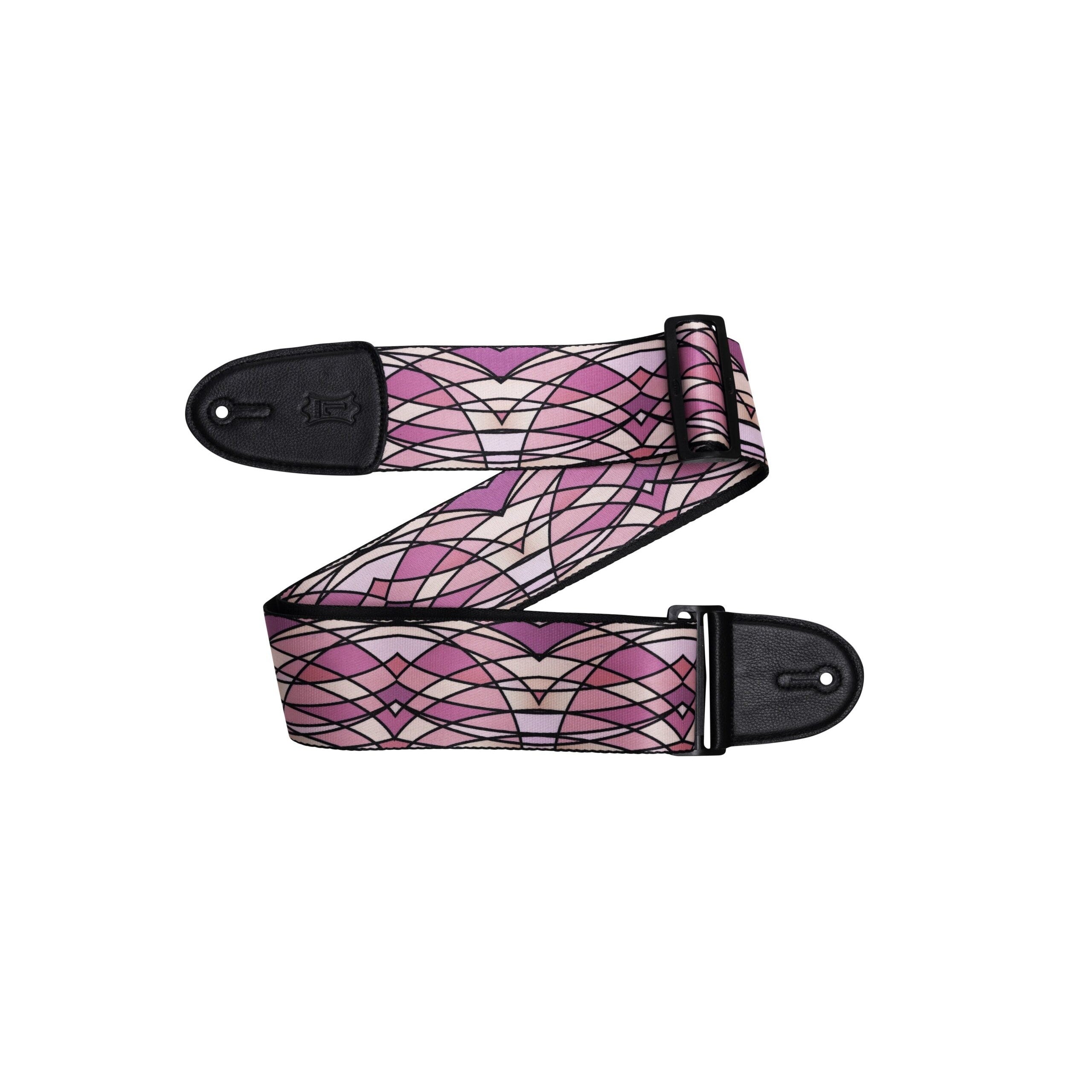 - Levy’s 3″ Wide Polypropylene Guitar Strap With Stained Glass Design In Pink