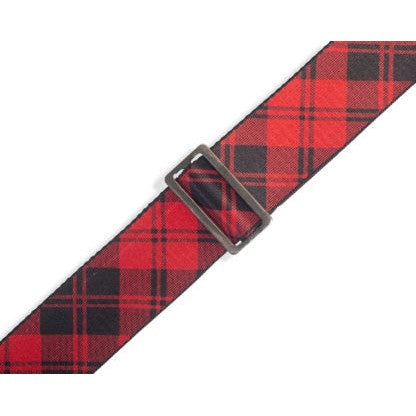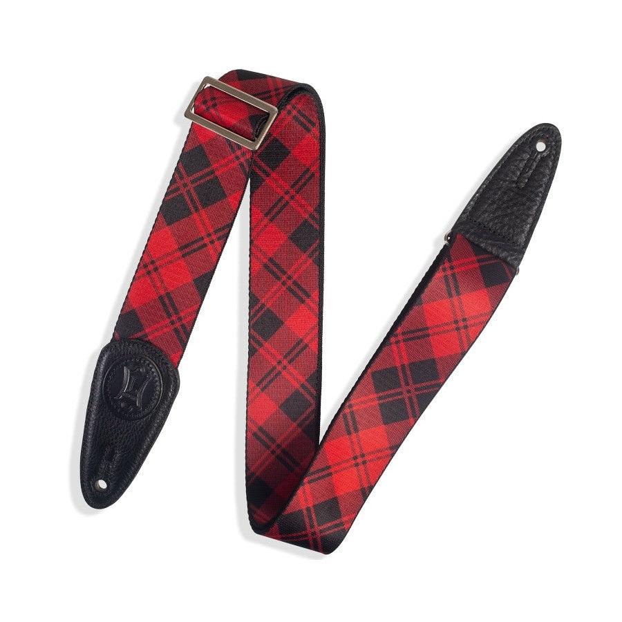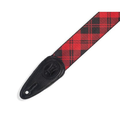 Levy’s 2″ polyester guitar strap in Lumberjack print with black garment leather ends.