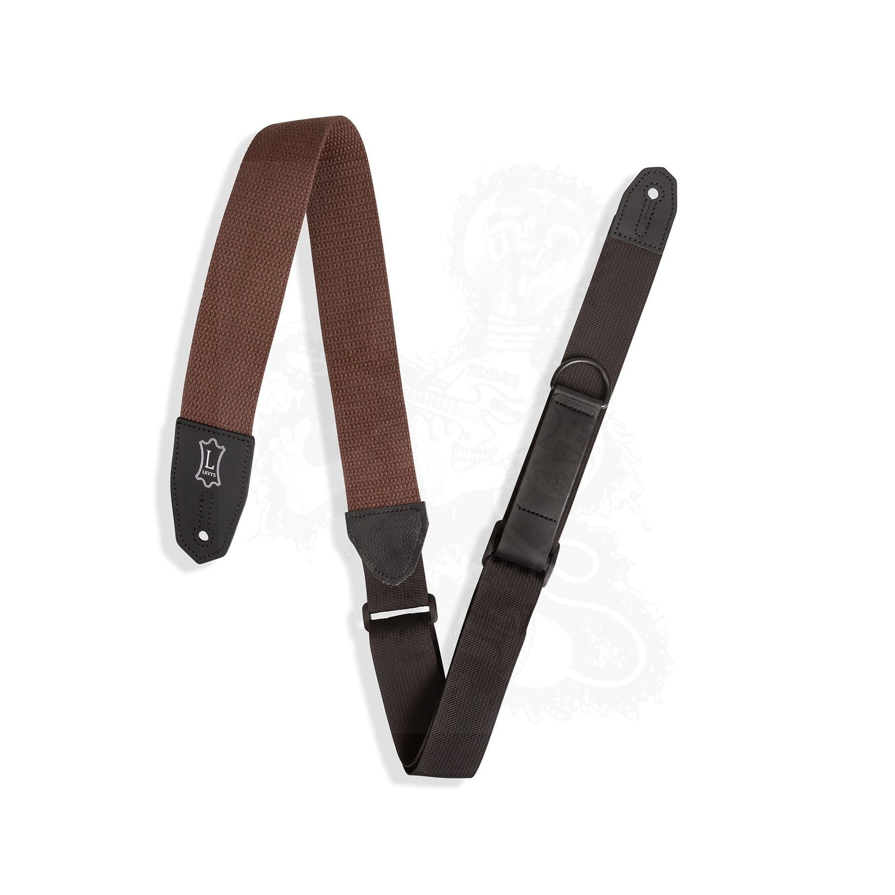 3 inch Right Height Brown Cotton Leather Guitar Strap Featuring RipChord Technology™ for Easy Adjust. Black Webbing And Leather With Polyester Webbing Adjustable From 43 to 57 inches.