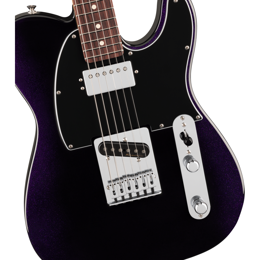 The Player II Modified Telecaster® SH is a classic guitar with the modern player in mind. Everything about the neck is designed for fast and fluid playability, from the Modern “C”-profile with silky satin urethane finish on the back to the comfy 9.5”-radius slab rosewood or 1-piece maple fingerboard with smooth rolled edges and 22 medium jumbo frets. The alder body provides classic Fender punch and is available in a variety of exciting new finishes. The Player II Modified humbucker is articulate with plenty of output and the noiseless™ pickup delivers classic Tele® twang and bite while eliminating unwanted noise and feedback. For additional tonal flexibility the push/pull tone switch splits the neck humbucker and enables classic Tele® neck single-coil tones. The 6-saddle bridge, short post locking tuners, TUSQ® nut and modern string tree all combine to keep tuning incredibly stable for even the most demanding steel-emulating bends or roaring rock leads.