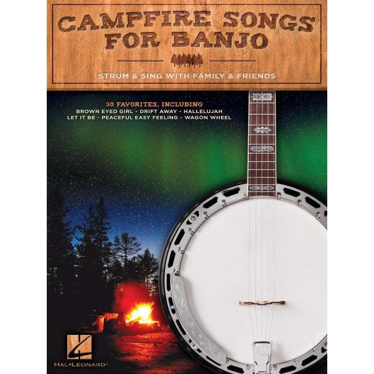 30 essential fireside favorites arranged for banjo, including: Brown Eyed Girl · The Campfire Song Song · Drift Away · Edelweiss · Folsom Prison Blues · God Bless the U.S.A. · Hallelujah · Hello Mudduh, Hello Fadduh! (A Letter from Camp) · I Walk the Line · Lean on Me · Let It Be · The Lion Sleeps Tonight · On Top of Spaghetti · Peaceful Easy Feeling · Take Me Home, Country Roads · This Land Is Your Land · Wagon Wheel · You Are My Sunshine · and more.
