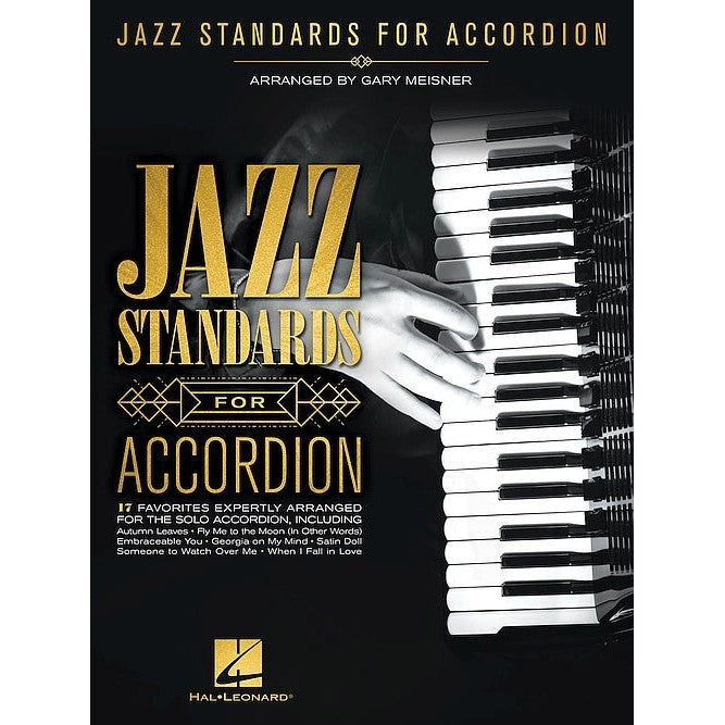 17 jazz standards expertly arranged for accordion, including: Alice in Wonderland · Autumn Leaves · Embraceable You · Fly Me to the Moon (In Other Words) · Georgia on My Mind · Honeysuckle Rose · My Foolish Heart · The Nearness of You · Satin Doll · Someone to Watch over Me · Song for My Father · When I Fall in Love · and more.