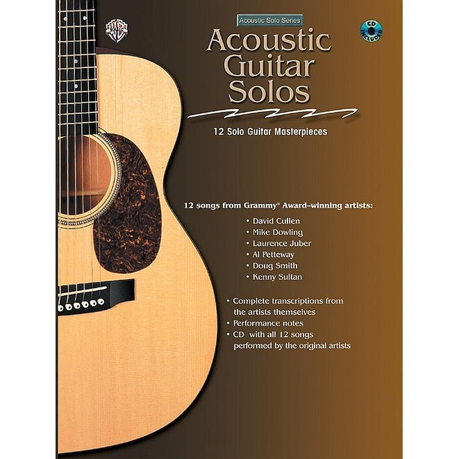 Each book in the Acoustic Solo Series contains complete transcriptions from the artists themselves in full standard notation and tablature. Performance notes are also included. The full original recording of each song is featured on the included CD. Twelve spectacular solo guitar arrangements, all in standard tuning (with a few simple variations), from David Cullen, Mike Dowling, Laurence Juber, Al Petteway, Doug Smith, and Kenny Sultan. The 12 songs provide an amazing overview of styles and techniques for solo guitar. From swing and blues to contemporary instrumental guitar styles, each piece will make a terrific addition to any solo guitarist's concert repertoire. Titles: The 5:55 * Bahama Beach * Blue Counterpoint * Crest of the Revolution * Go Ahead and Play * Groove Etude * Indigo Blue * Midari * Nitpickin' * Slippin' and Drippin' * Sunday Sonata * The Tempest.