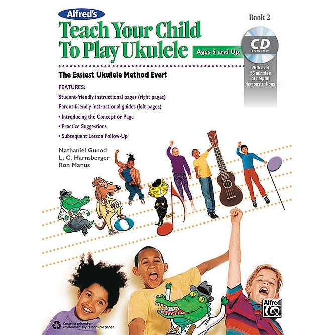 Alfred's Teach Your Child To Play Ukulele is designed for parents who want to share the gift of music with their children before they begin formal study with a professional teacher. It is based on Alfred's Kid's Ukulele Course, a fun method that teaches students to play songs on the ukulele right away. Families who are part of the homeschool movement will find this book especially useful. Using the same music and fundamentals included in the original edition, an easy and user-friendly Parent Guide precedes each student page to aid with teaching the music to the child. The guide suggests steps for introducing the concept or page to the student, follow-up practice suggestions, and suggestions for reviewing the material in subsequent lessons. The enclosed CD contains a recording of every piece in the book. Listening or playing along with the recording is fun, but more importantly, it reinforces concepts such as rhythm and switching smoothly between notes and chords. Using this book and CD, any parent can teach their child the basics of ukulele.