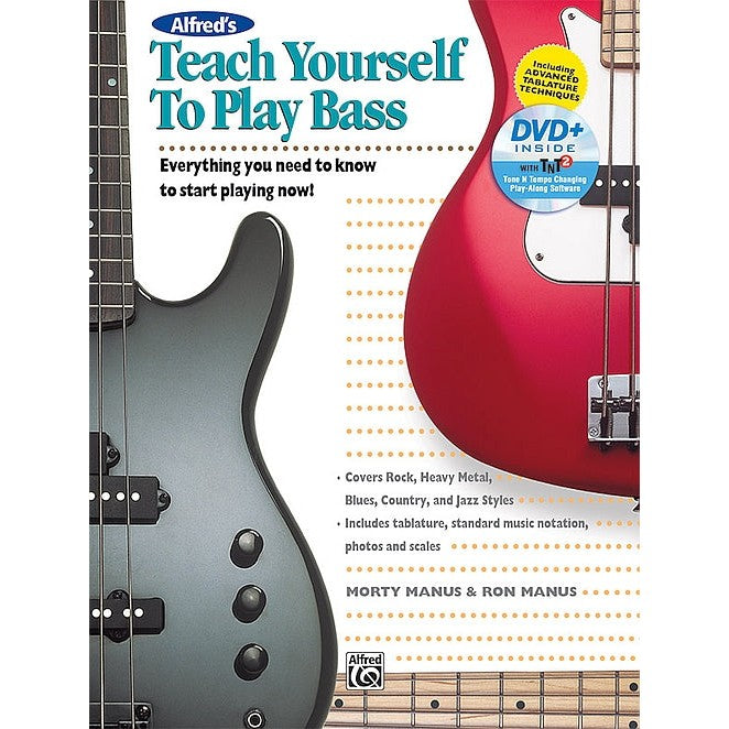 Learn to play bass and open up a brand new world of musical knowledge with this exciting method from Alfred Music. Beginners of all ages can start their journey to a lifetime of musical enjoyment. Beginning with the fundamentals, you will learn about buying a bass guitar, tuning and holding it, fingering and picking styles, and getting acquainted with standard musical notation and tablature. You will then move right along to playing different notes, scales, and bass lines, lesson by lesson, all while continuing to increase your knowledge of reading and understanding standard musical notation and TAB. You will learn to play in an array of musical styles, including rock, Heavy Metal, Blues, country, and jazz. Near the end of the book you will be introduced to the concept of playing from chord sheets, which will assist you in coloring your and others' musical creations with your own unique, rockin' style. Upon completion of this book, you will be able to play from popular bass TAB folios and be ready to play in a band. The book features the following resources for reference during and after your lessons: * TAB licks and bass lines * Bass fingerboard chart * Complete chord chart * Photos showing hand positions and more The accompanying DVD features educator Jared Meeker teaching every lesson and performing all the songs. The DVD also includes TNT 2 software that lets you customize audio tracks for practice. Use it to slow down tracks, isolate and loop parts, and change tempos and keys. You may also stream the video and download the TNT 2 software from a browser. Be your own teacher, and let Alfred Music be your resource every step of the way.