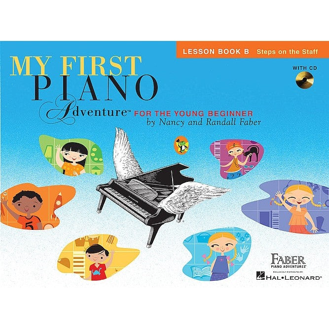 Book B of the Fabers' method for the young beginner moves the student into staff-reading. Music notation is explored through stepwise directional reading, pattern recognition, and changing hand positions, all in the context of engaging songs, games and creative exploration at the piano. Maintaining the child-centered philosophy of the series, the friends at the piano from the A Books introduce students to the music of two new composer friends - Wolfgang Amadeus Mozart and Ludwig van Beethoven. Classic themes share the stage with contemporary pop and jazz sounds for young ears to absorb and enjoy. The Book B CD presents a vibrant mix of sounds, from boogie to Beethoven. It serves as a listening CD which educates and as an accompaniment CD for play-along.