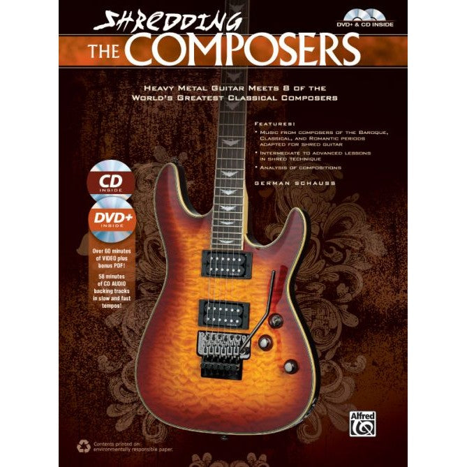 Some of the most brilliant and virtuosic music of all time was written during the baroque, classical, and romantic periods by composers like Beethoven, Handel, Vivaldi, Mozart, and Chopin. Many of these exciting musical works are perfect for shredders of any era and take on a whole new life when adapted for heavy metal guitar. This collection of 10 classical masterpieces for shred guitar provides theoretical analysis to help you apply what you learn to your own compositions and soloing. Every piece features innovative techniques and ideas to shed new light on these timeless compositions and stretch your playing to new limits. The accompanying DVD includes demonstrations of many of the pieces, and the provided MP3 files feature all of the examples recorded at multiple speeds to help you practice and get you on your way to mastering the challenging compositions of these great classical composers.