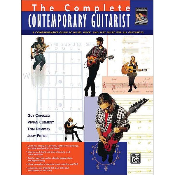 The Complete Contemporary Guitarist is a comprehensive 396-page guide for blues, rock, and jazz players. Combining theory, ear training, fretboard knowledge, and sight-reading all under one cover, the book features easy-to-read chord and scale diagrams, plus detailed musical examples. It teaches intervals, scales, chords, and progressions using standard music notation and TAB. Drills and worksheets for self study and an ear training CD for further development are included.
