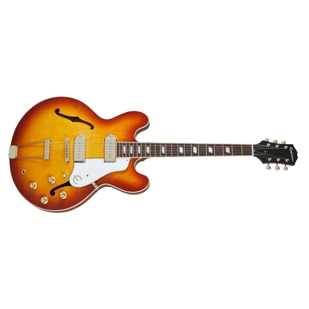 Now made in the USA for the first time in over 50 years! Since its introduction in 1961, the Epiphone Casino™ has been the choice of countless musicians including Paul McCartney, John Lennon, George Harrison, Keith Richards, Ray Davies, Dave Davies, and Paul Weller. The new Casino from the USA Epiphone Collection featuring a classic maple and poplar body with a Royal Tan nitrocellulose lacquer finish (nickel dogear Gibson USA P-90s) or a Vintage Sunburst nitrocellulose lacquer finish (black dogear Gibson USA P-90s). The USA Collection Epiphone Casino also features handwired electronics with Orange Drop® capacitors and Gibson USA P-90 Dogear single-coil pickups. Featuring Gibson Strings.