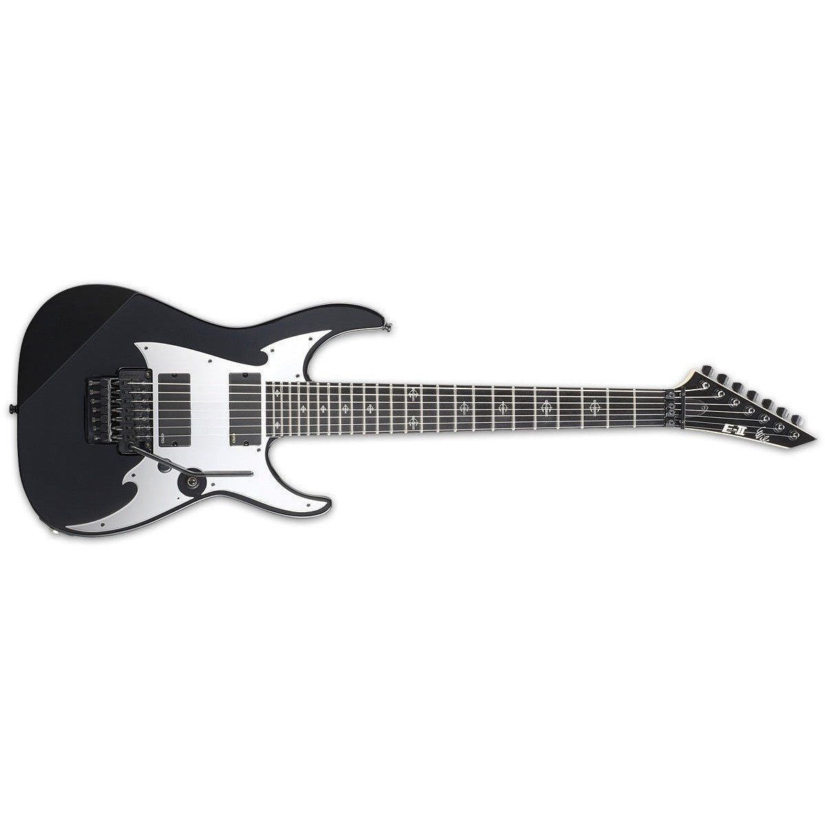 As the lead guitarist of Finnish power metal band Sonata Arctica, Elias Viljanen covers a lot of ground from fluid, melodic leads to uber-progressive riffs and odd-tempo rhythms. The guitar he uses to help create the band's legendary sound is his ESP E-II Signature Series model, the EV-7. It's a very unique seven-string guitar that offers neck-thru-body construction at 25.5" scale, pairing a comfortable alder body to a super fast, extra-thin U-shaped three-piece maple neck, with an ebony fingerboard that offers the band's logo inlays and 24 extra-jumbo frets. It offers the top-tier components you expect from an E-II model, including a Schaller straplock, Gotoh tuners, a Floyd Rose Original bridge, and a pair of outstanding EMG 707 (neck) and EMG 81-7 (bridge) pickups. The E-II EV-7's distinctive look is supplemented with a unique chrome pickguard over its black finish.