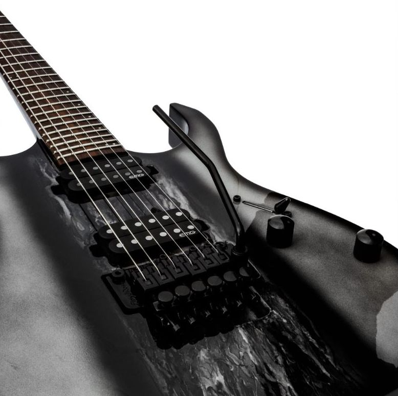 SPECS Body: Basswood Neck: 5 Piece Maple Mahogany Stripes Fretboard: Rosewood Inlays: Luminlay Tuners: Gotoh Pickups: EMG JIM ROOT SET Electronics: 1v 1t 3 way switch Bridge: Original Floyd Rose Nut: Back Plates: BLACK STAINLESS ALUMINUM Strings: Daddario NYXL .10-.46 Tuning: Regular Case: Carbon Black Case