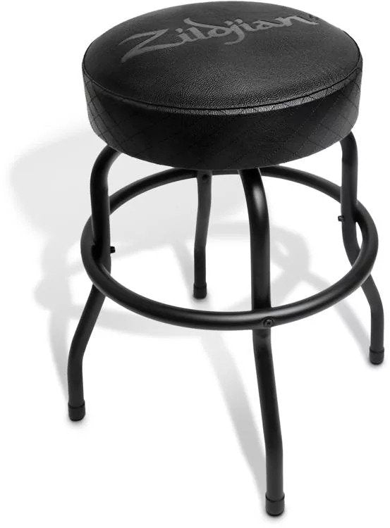 Get some serious Zildjian style and vibe with the Black Logo Barstool. This stylish bar stool is made from rugged 1-inch tubular steel with a powder-coated finish. It also features a generous foam-padded seat with a leather-style vinyl for hours of comfortable sitting. A 360-degree revolving swivel and a foot ring for hooking your heels make it ideal for rehearsal. And non-slip rubber feet ensure this stool stays in place even during your most spirited jam sessions.