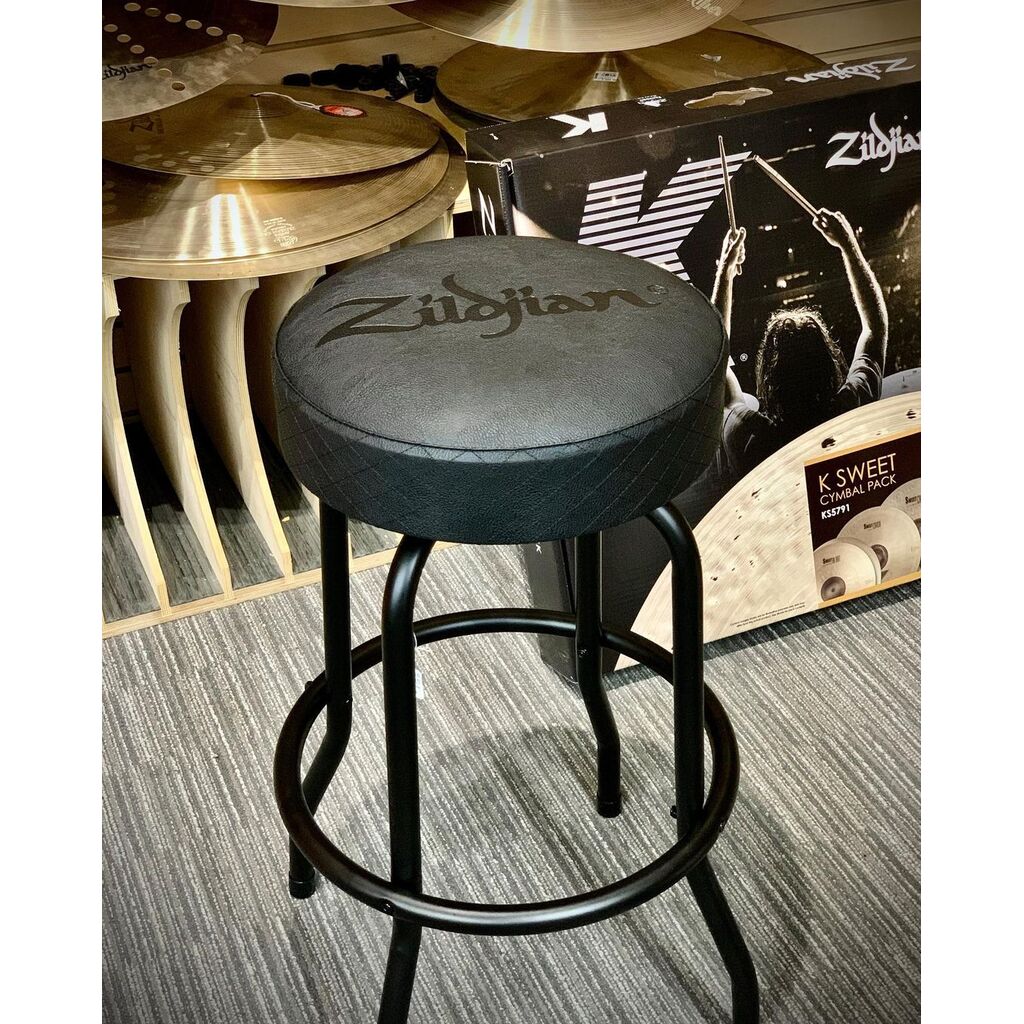 Constructed from heavy-gauge 1" tubular steel with a powder-coated finish, the thick, foam-padded seat top consists of commercial-grade black leather-style vinyl and features a debossed Zildjian logo and stylish side-stitching. With a 360-degree revolving swivel, a foot ring for hooking your heels and non-slip rubber feet, this stool is as comfortable as it is stylish.
