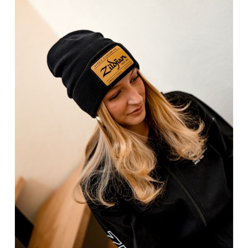 Gear up for cooler days with our cozy black beanie, designed for comfort and style. This fitted knit hat features a classic folded brim and a large rectangle woven patch in classic Zildjian gold for a clean look that pairs with anything. Perfect for layering on crisp mornings and chilly evenings, this beanie is a must-have for drummers.