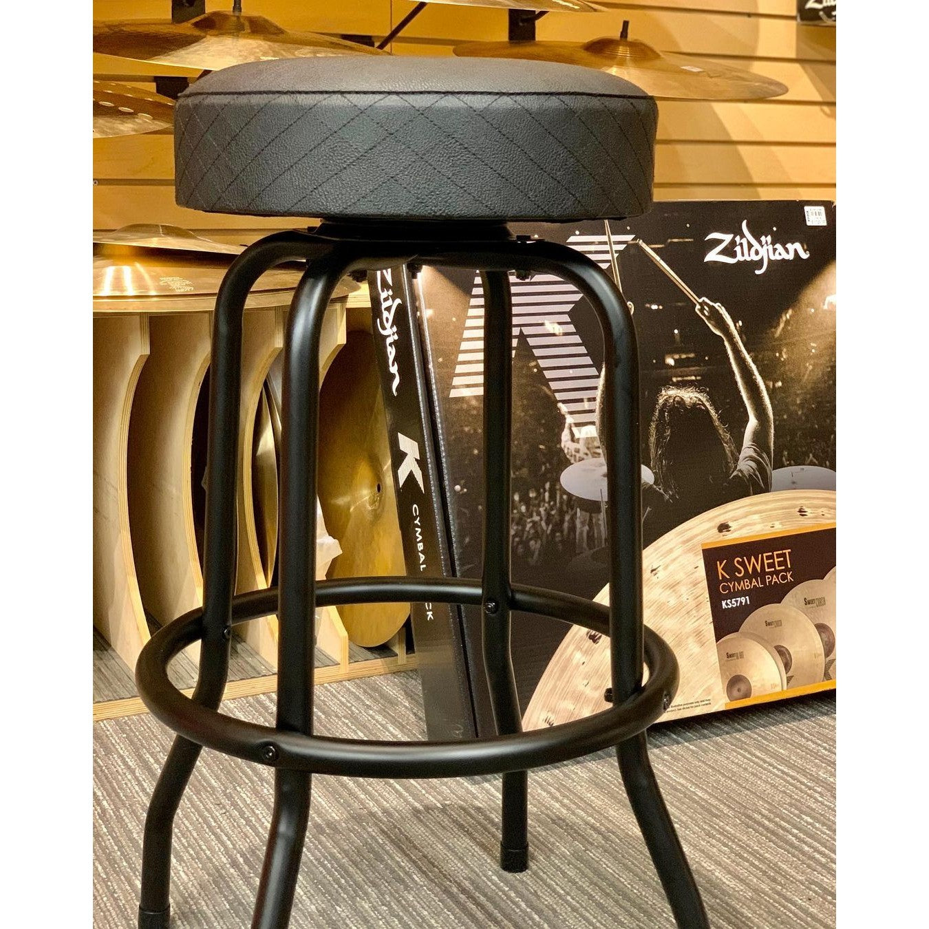 Constructed from heavy-gauge 1" tubular steel with a powder-coated finish, the thick, foam-padded seat top consists of commercial-grade black leather-style vinyl and features a debossed Zildjian logo and stylish side-stitching. With a 360-degree revolving swivel, a foot ring for hooking your heels and non-slip rubber feet, this stool is as comfortable as it is stylish.