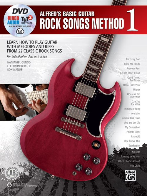 The latest addition to Alfred's best-selling Alfred's Basic Guitar Method series, Alfred's Basic Guitar Rock Songs Method 1 features melodies, licks, and riffs from 22 of the best-known rock songs. Familiar rock songs we all know and love, along with helpful photos and diagrams, help introduce each new technique and concept. Featuring the same clear, well-paced instruction that sets Alfred's Basic Guitar Method apart, you'll start by learning the basics and will be playing classic riffs and licks in no time. Learning to play guitar has never been easier or more fun! The included DVD features companion video lessons, MP3 audio demonstration tracks, and exclusive TNT 2 software, which lets you customize audio tracks for practice. The video, audio, and TNT 2 software are also accessible online.