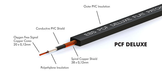 The EBS flat patch cable is an original design by EBS. Due to the clever space saving design, the cables have become the patch cable-to-go for musicians all over the world. If you have ever struggled with limited space on your pedalboard, we share the pain with you. To end the frustration EBS has designed the truly unique, super compact and affordable EBS Flat Patch Cables. Cables that won’t let you down on sound and flexibility, and at the same time reduce the space needed between pedals to a minimum. The PCF Deluxe (PCF-DL) series is the most affordable alternative and is an improved version of the original design. Double shielded cables and very low resistance keep your signal path clean and strong all the way through the pedalboard. Very compact size and flexible cables ensure effective use of ALL space on your pedalboard. Available in four lengths to cover your needs; 10, 18, 28 and 58 cm.