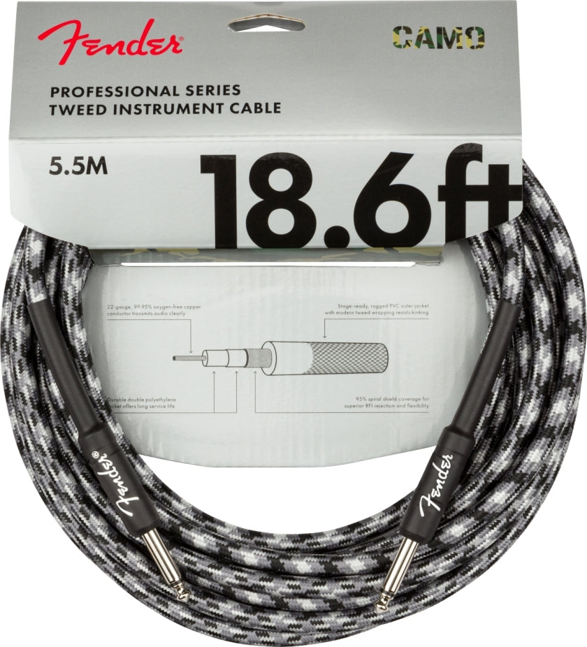 Blend in to stand out with our collection of camouflage cables! Road-reliable and flexible, Fender Professional Series cables boast a thick gauge with high-quality components that transparently retain your tone without getting in the way. Sporting quiet and resilient spiral shielding, these cables are engineered to avoid twisting, kinking and any physical memory. On stage or in the studio, plug in and play with style, creative confidence and peace of mind.