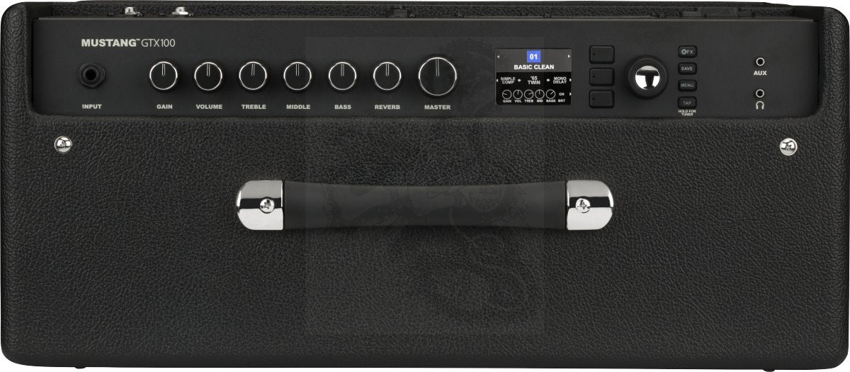 Mustang GTX 100 offers incredible bang for the buck. The all-new cabinet design is more gig-ready and durable; a new 12-inch Celestion speaker produces strong, powerful response; and the improved amp, speaker and cabinet models ensure that Mustang GTX sounds better than anything else in its class. Stereo XLR line outputs and stereo effects loop let you interface with PA, recording and outboard gear. GTX100 also features a seven-button footswitch with individual bank up and down functions and easy effects selection, making GTX a true live performance amp. It also unlocks the amp’s included 60-second looper.