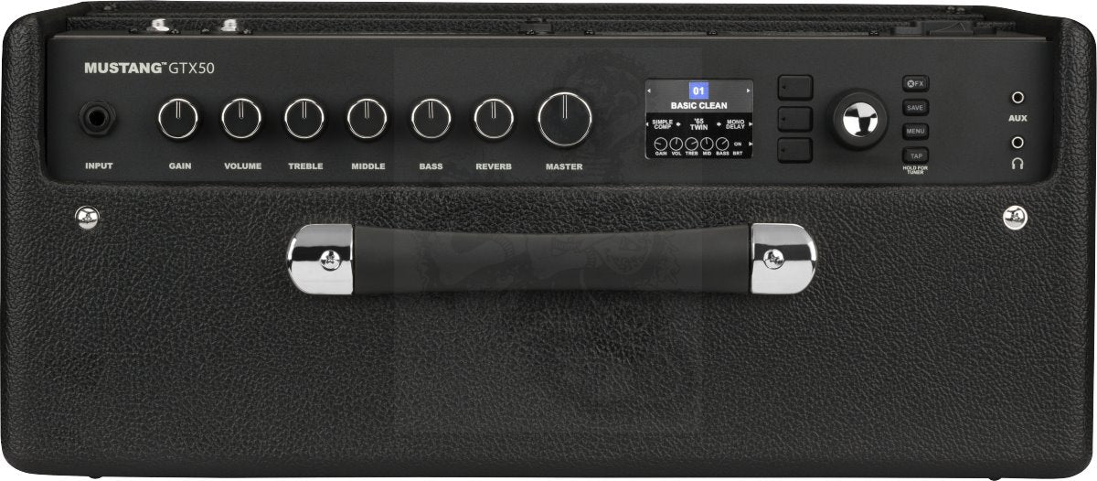 Mustang GTX50 offers incredible bang for the buck. The all-new cabinet design is more gig-ready and durable; a new 12-inch Celestion speaker produces strong, powerful response; and the improved amp, speaker and cabinet models ensure that Mustang GTX sounds better than anything else in its class. Stereo XLR line outputs and stereo effects loop let you interface with PA, recording and outboard gear. There's also an optional seven-button footswitch available with individual bank up and down functions and easy effects selection, making GTX a true live performance amp. It also unlocks the amp’s included 60-second looper.